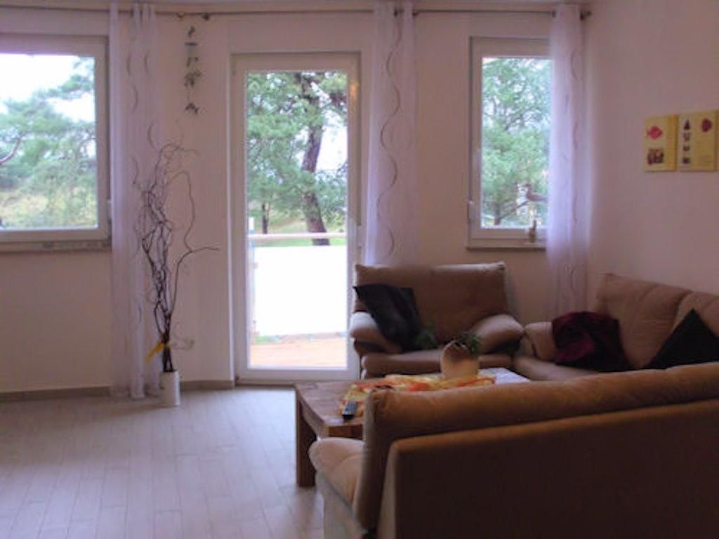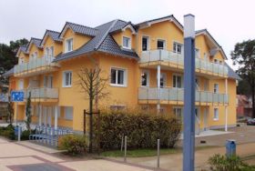 Die komfortable Ferienwohnung 'Muschelblick' (Wohnung 9) befindet sich in einem Wohn- und Geschäftshaus unweit des Kurplatzes mit der Konzertmuschel in Trassenheide. Über die Strandstraße gelangen Sie in wenigen Minuten an den feinsandigen Ostseestrand.