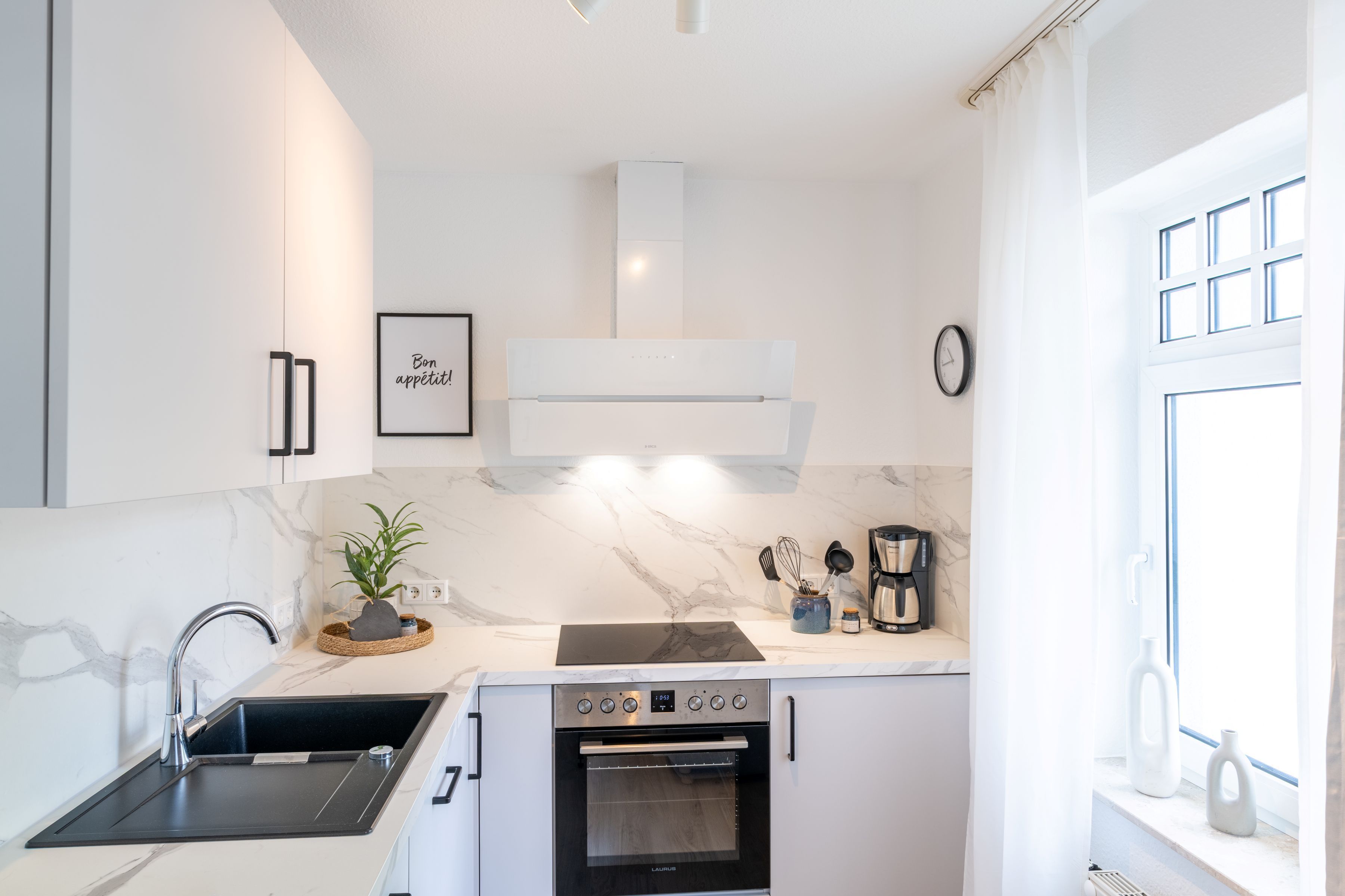 Die 35 qm große und neu renovierte Wohnung befindet sich im ersten Obergeschoss und ist für zwei Personen ausgestattet. Die Wohnung verfügt über ein Wohnzimmer mit Doppelbett, Sitzecke und Essplatz. Die separate Küche ist Kühlschrank, Spülmaschine, Herd u.v.m. ausgestattet. Bad mit Dusche und WC.