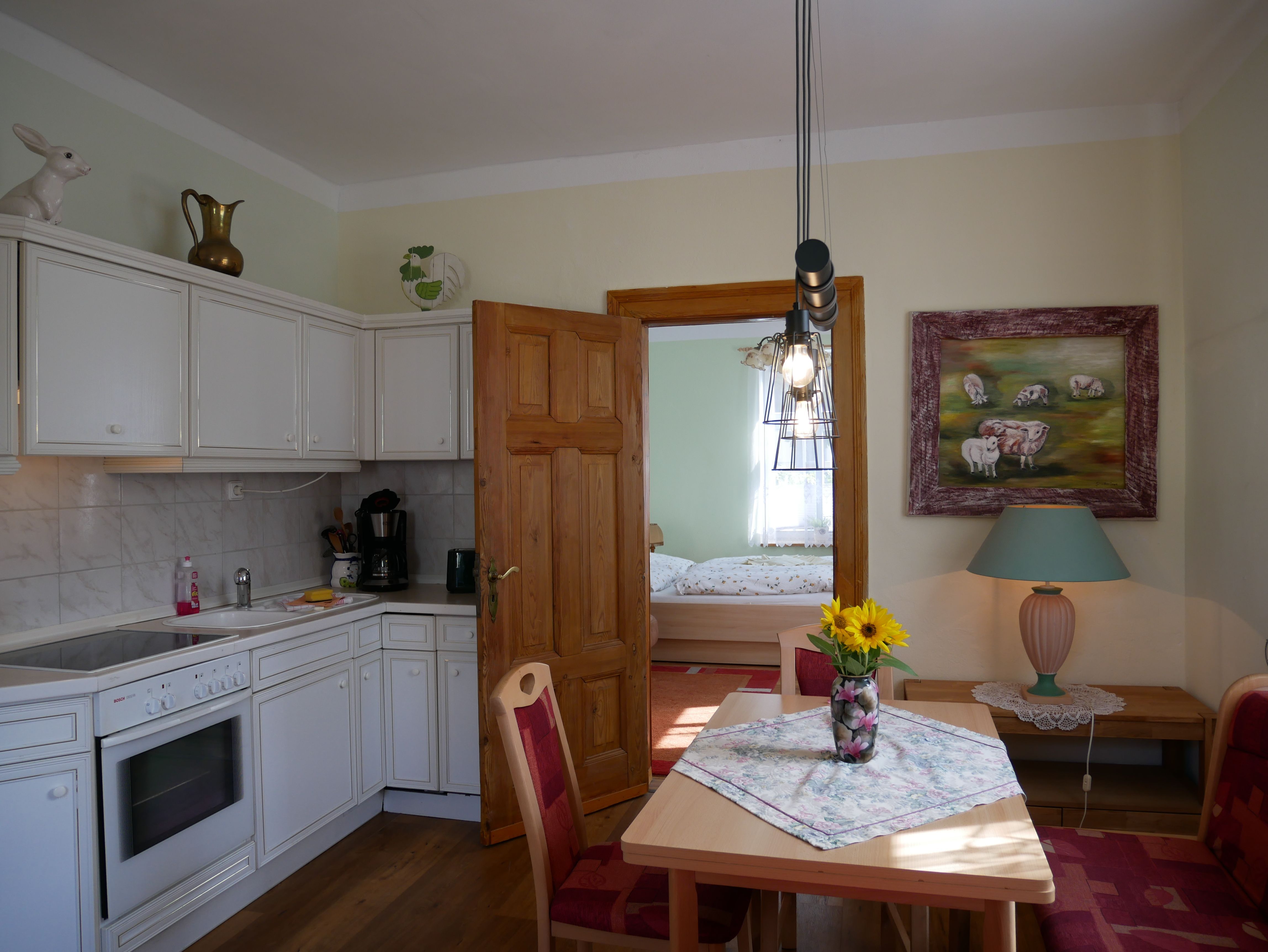 Die Ferienwohnung liegt in Hochparterre, ist ca. 36 qm groß und gut für 1 bis 2 Personen geeignet. Sie teilt sich auf in ein kombiniertes Wohn- und Schlafzimmer mit Doppelbett, Kleiderschrank, Couch und Fernseher, sowie in eine separate Küche. Die Küche ist mit einem Elektroherd mit Ceranfeld, Kaffeemaschine, Wasserkocher, Toaster und Kühlschrank ausgestattet. Das Badezimmer verfügt über eine Dusche und WC. Zur Ferienwohnung gehört ein Balkon, sowie ein PKW-Stellplatz auf dem Grundstück unmittelbar am Haus. Die ortsübliche Kurtaxe ist vor Ort zu zahlen.