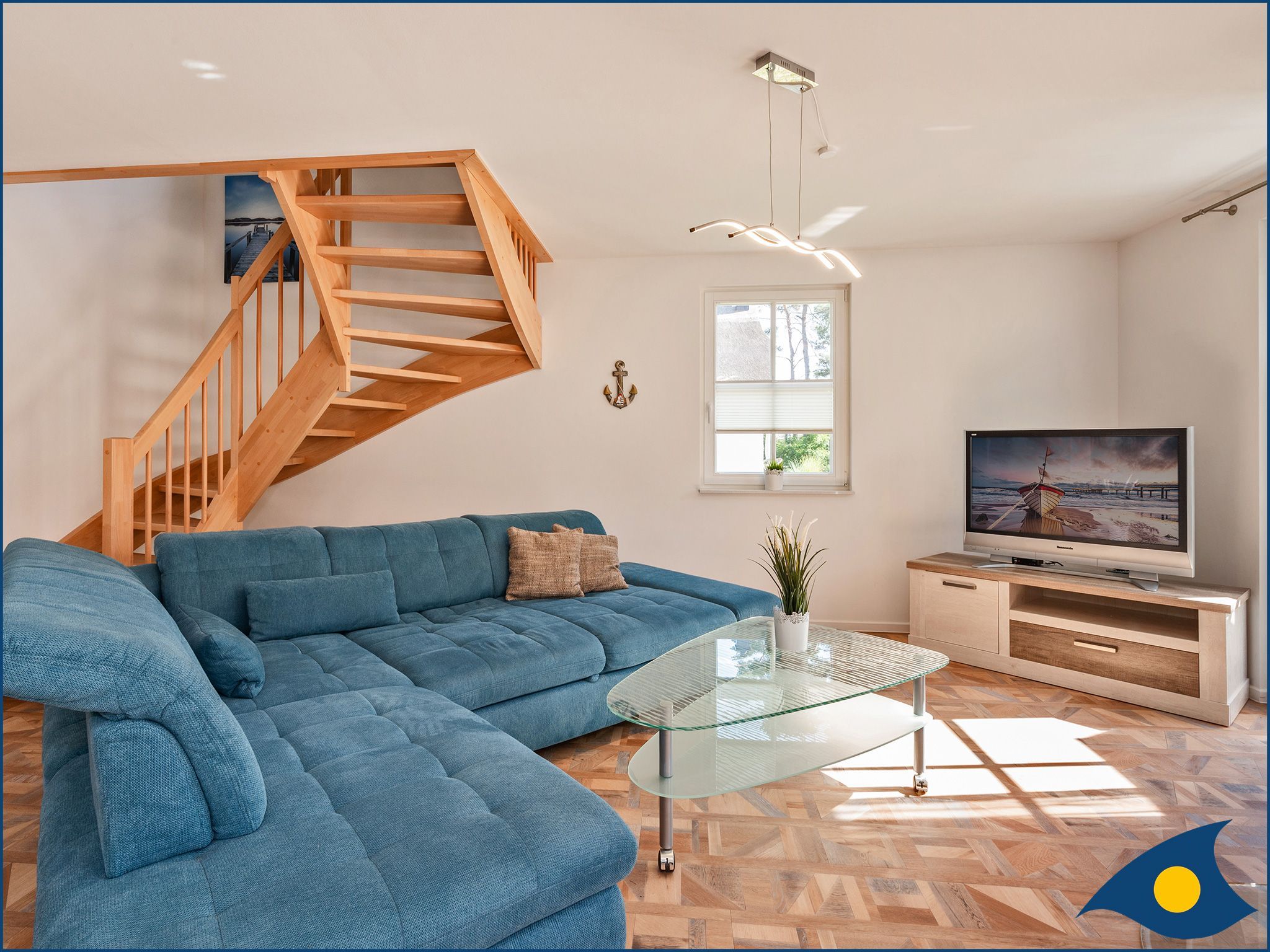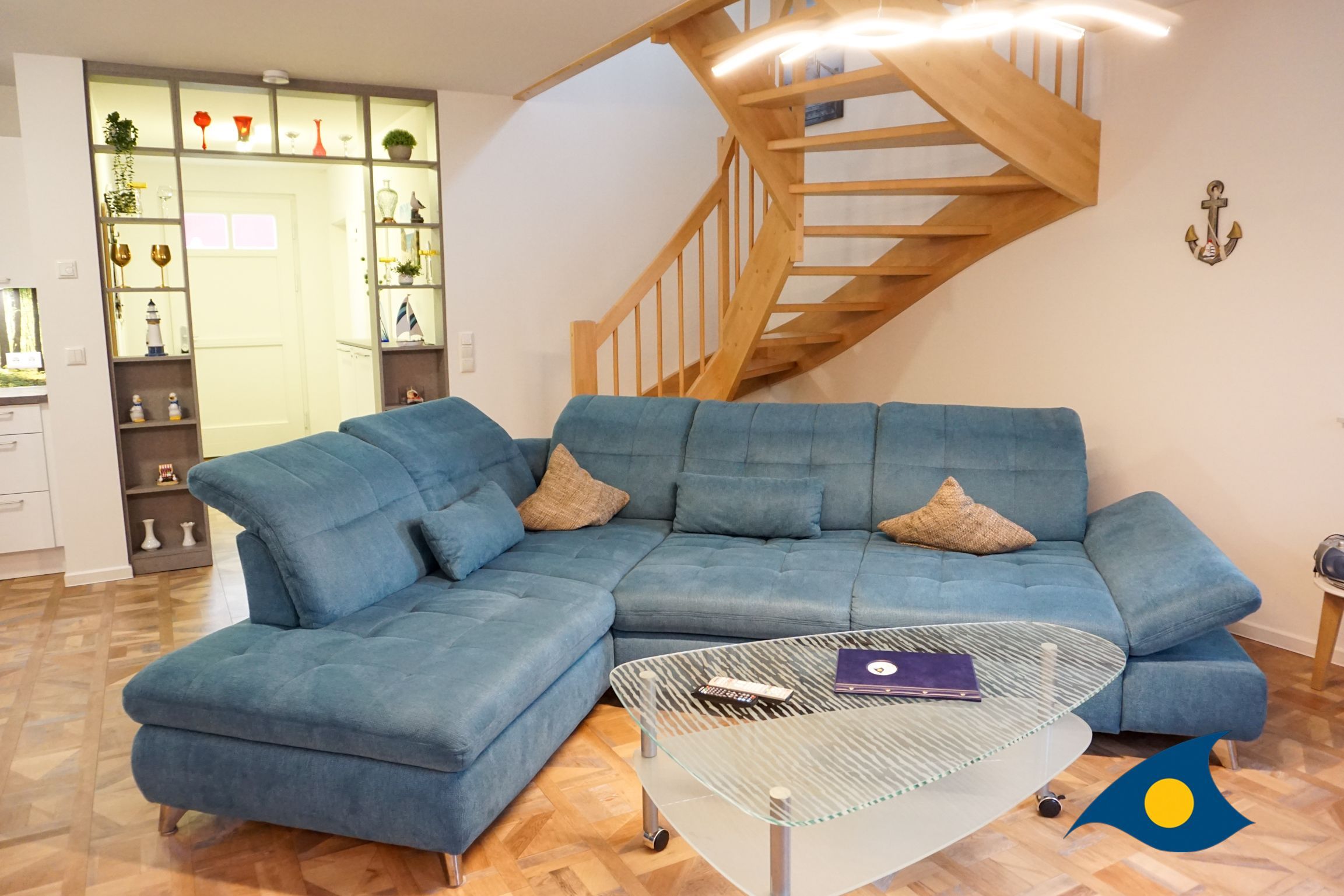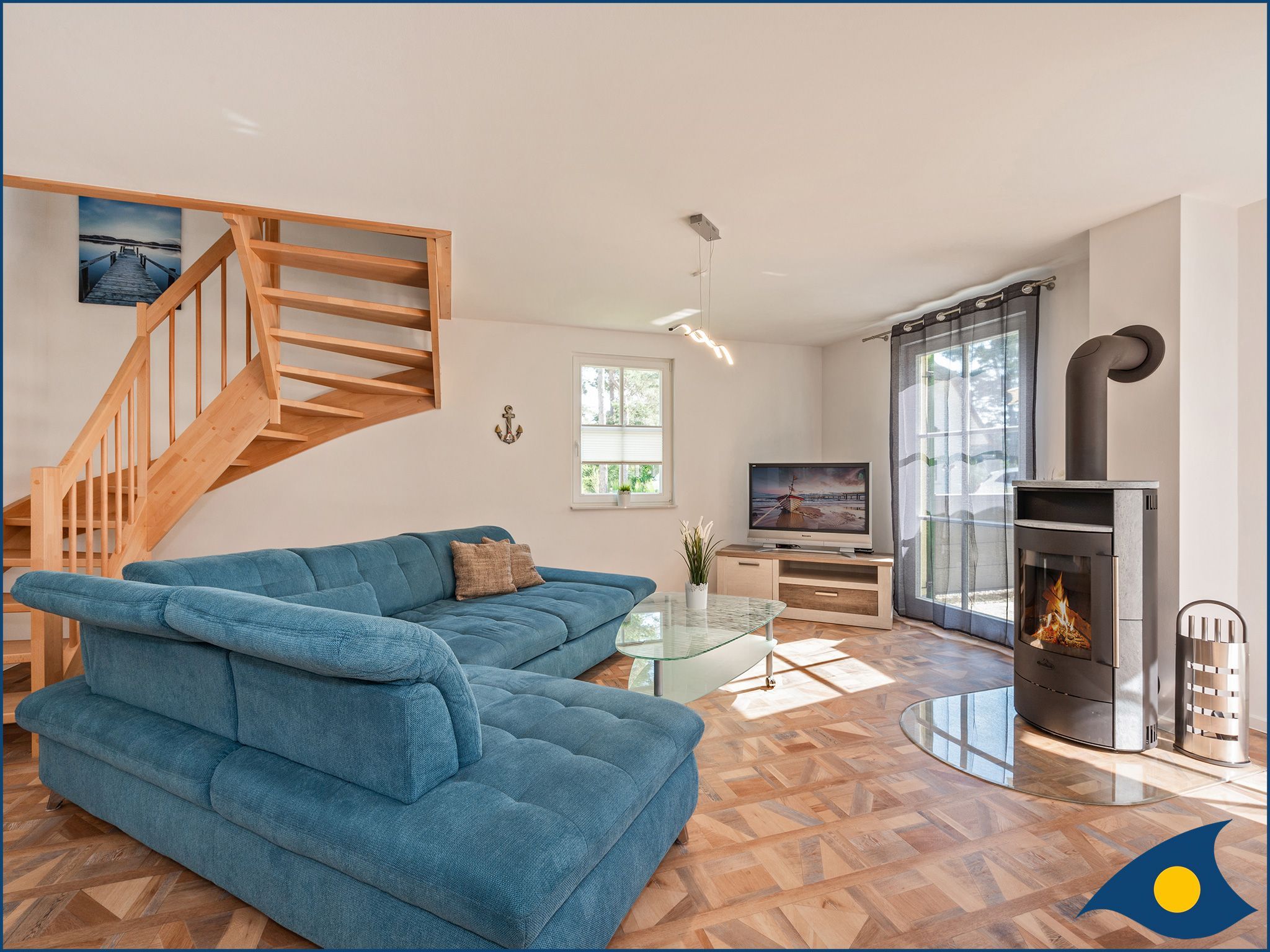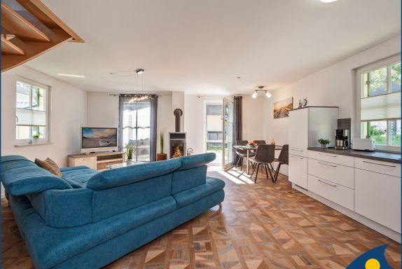 • größzügiges Wohnzimmer inkl. Schlafcouch mit Kamin und offener Küche