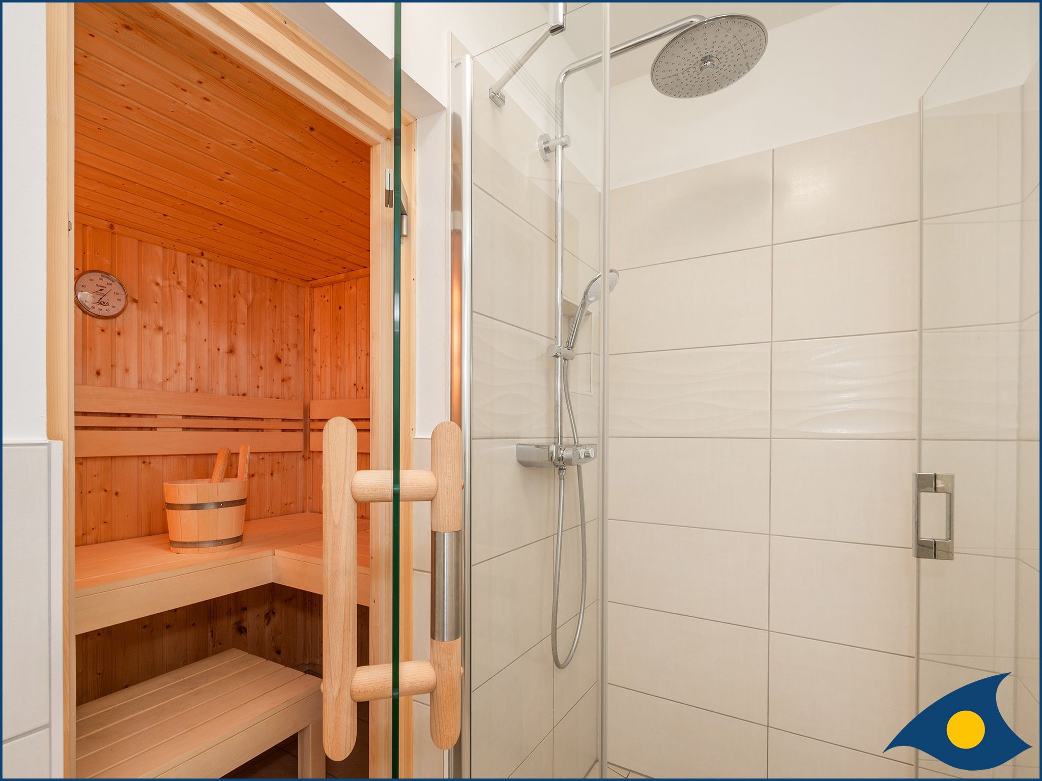 Im Erdgeschoss befindet sich das großzügige Wohnzimmer mit Kamin sowie offener Küche und Essbereich. Von hier aus gelangen Sie auf die Sonnenterrasse, auf der Sie den Tag verbringen und die Abende ausklingen lassen können.Ebenfalls im Erdgeschoss steht Ihnen eine Sauna mit Dusche sowie ein Gäste-WC zur Verfügung. So wird auch an kühleren Tagen Ihr Urlaub zum Wellnessaufenthalt.