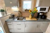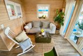 Die vielen Pflanzen und die Holzwände machen die Yara nicht nur wunderschön wohnlich, sondern schaffen auch ein besonders angenehmes Raumklima. Als kleines Highlight findet ihr auf der riesigen Dachterrasse noch einen Strandkorb und eine Sitzgruppe zum Relaxen, wenn dort die Sonne am Abend über der Ostsee untergeht.