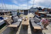 Der Wohnraum: Das Hausboot verfügt über verschiedene Schlafmöglichkeiten und eignet sich somit sowohl für Familien als auch für befreundete Paare oder einen Mehrgenerationenurlaub auf Kosten von Oma und Opa :) Ein kleines Duschbad und ein separates Gäste-WC sorgen für Privatsphäre und gute Laune am Morgen. Es gibt einen gemütlichen Ess- und Wohnbereich mit einer offenen Pantry-Küche, welche mit Gasherd und Mikrowelle ausgestattet ist. Nahtlos daran schließt sich am Heck eine überdachte Terrasse an. Gegrillt werden kann direkt gegenüber vom Steg am öffentlichen Grillplatz im Hafen.