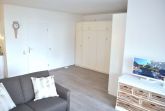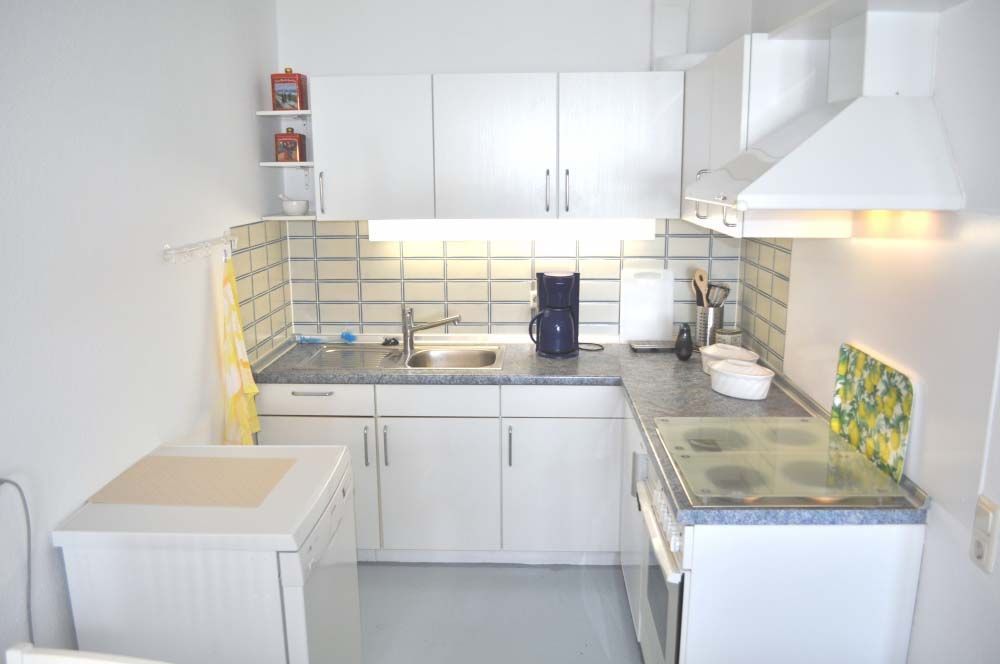 Wohnzimmer: 2 Couch, 4 Plattenherd mit Backofen, 4 Stühle, Anrichte, Beistelltisch, Couchtisch, Dunstabzugshaube, Einbaukleiderschrank, Einbauküche, Esstisch, Flachbildschirm, Geschirr, Handmixer, Kaffeemaschine, Kochtöpfe, Kofferradio mit CD-Player, Kühlschrank mit 3* Gefrierfach, Pürierstab, Sat-TV, Schrankdoppelbett, Spülmaschine, Stehlampe, Tischlampe, Toaster, Vitrinenschrankwand, Wasserkocher