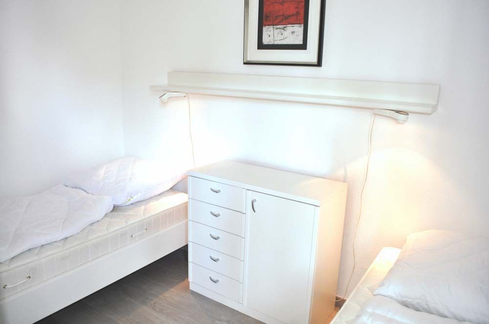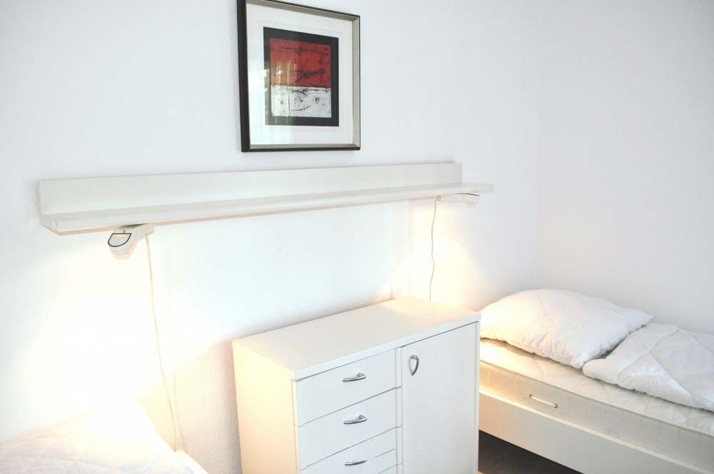 Schlafzimmer 1: 2 Einzelbetten 1,90 x 0,90 m, Ablage, Kommode