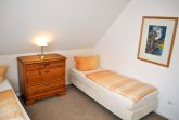 Schlafzimmer 1: 2 Kommoden, 2 Tischlampen, Einzelbett 2,00 x 0,80 m, elektrische Aussenrollladen, Flachbildschirm, Garderobe, Korbsessel, Sat-TV, Spiegel, Tisch