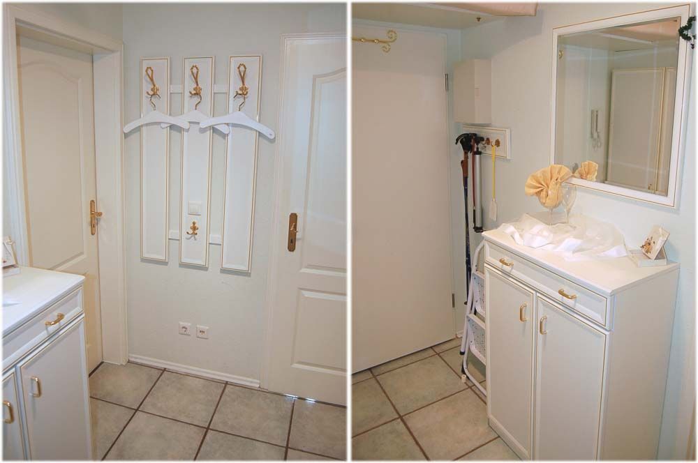 Flur: Einbauschrank, Garderobe, Kommode, Schlüsselbrett, Spiegel, Staubsauger, Trittleiter