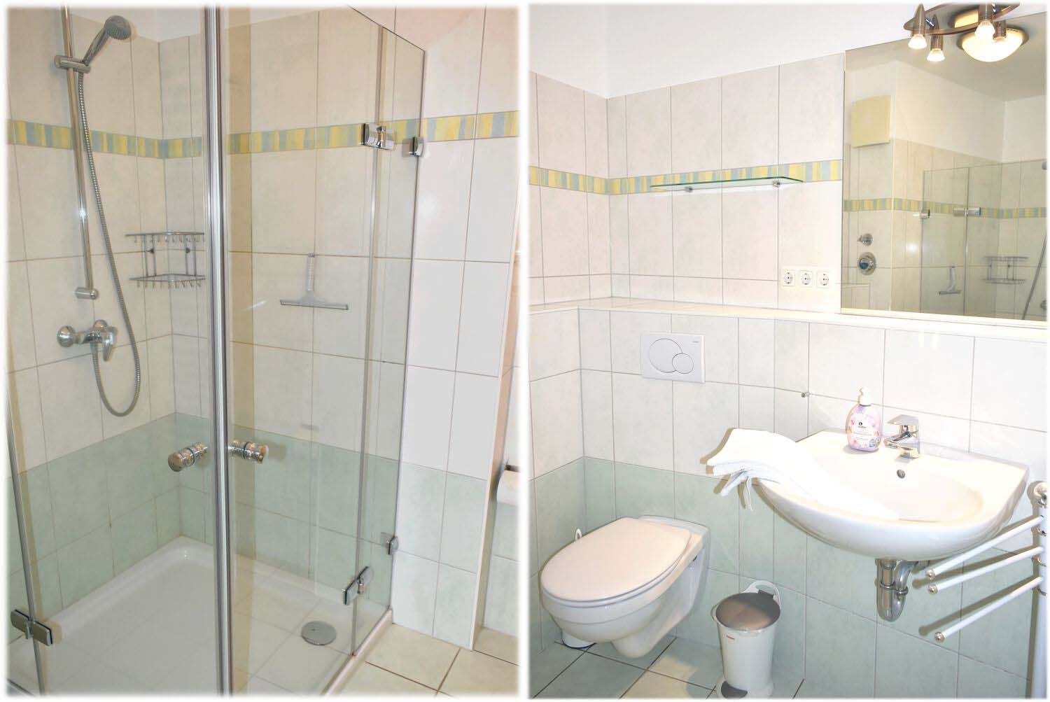 Bad 1: Dusche, Duschkabine, Waschbecken, WC