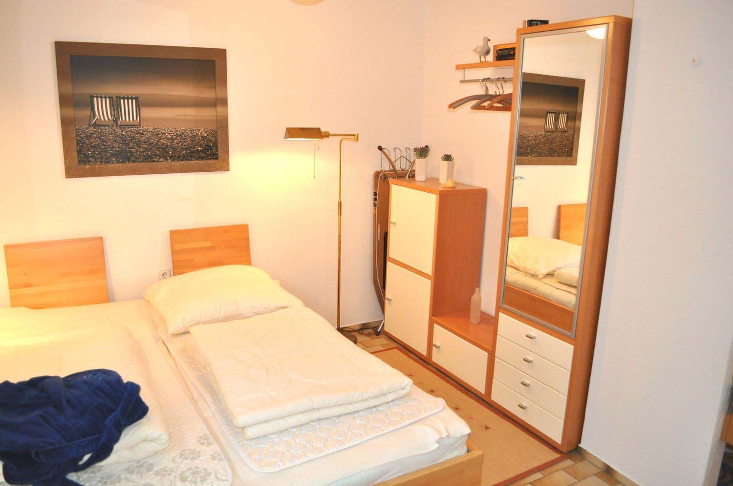 Schlafzimmer 1: 2 Nachttische, Doppelbett 2,00 x 1,60 m, Kleiderschrank, Spiegel, Staubsauger
