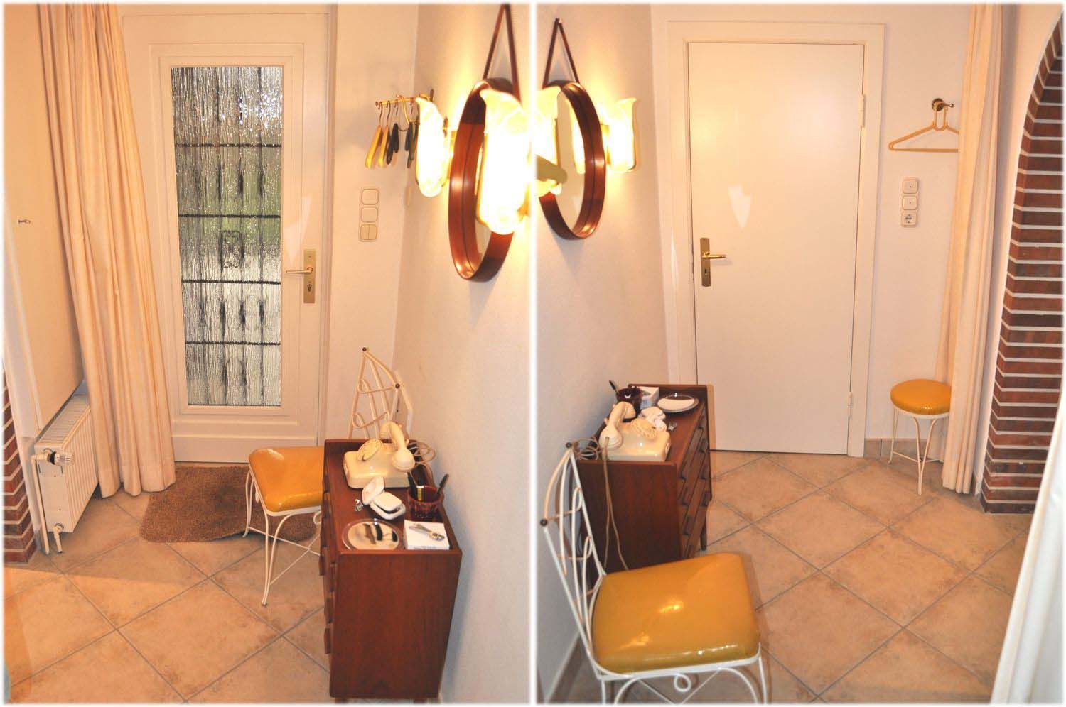 Flur: Garderobe, Hocker, kleiner Schrank, Spiegel, Stuhl