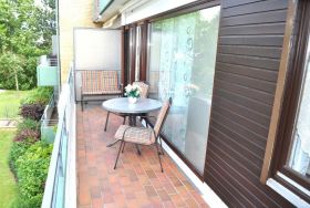 Balkon: 2 Stühle, Bank, Markise, Tisch, Westlage