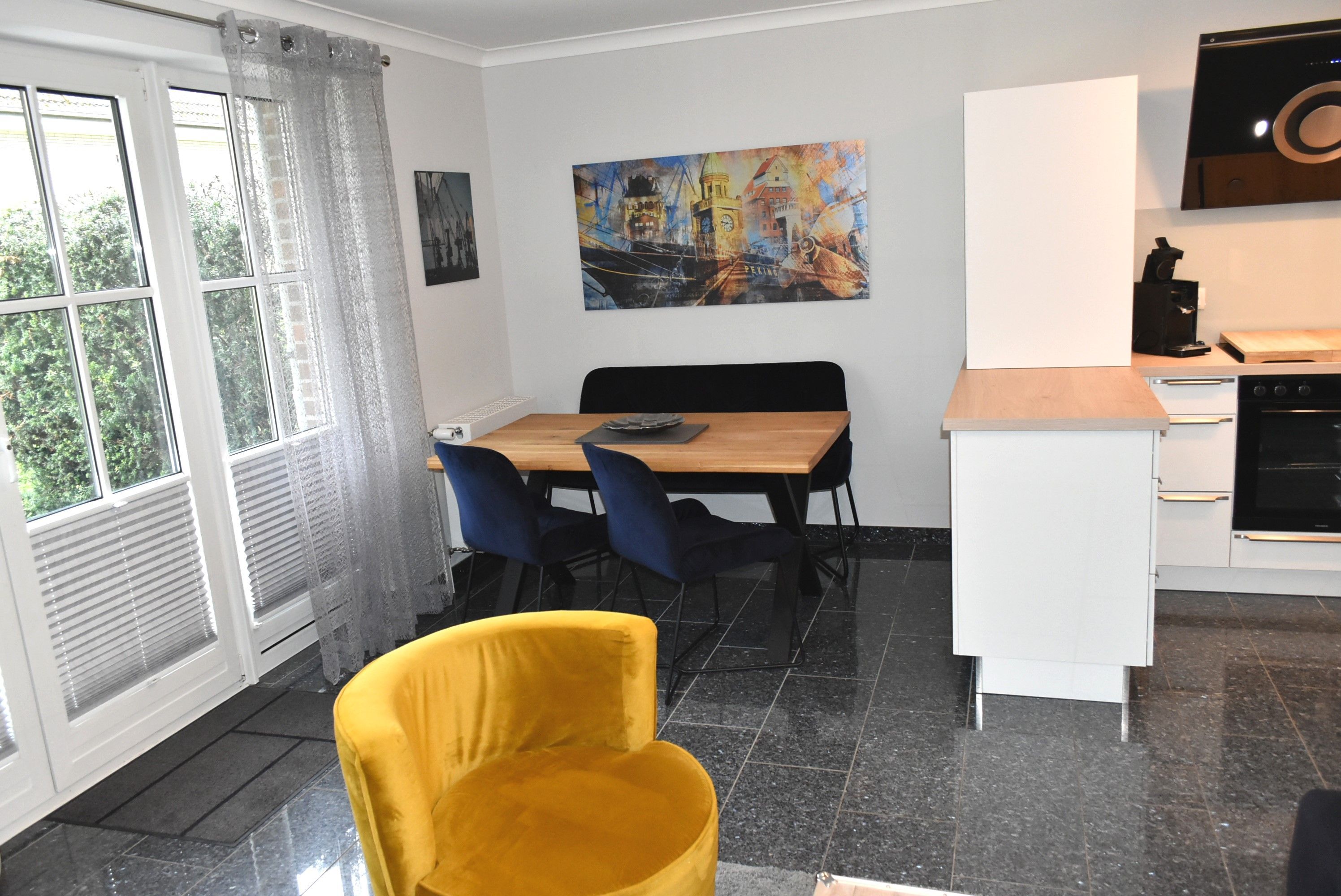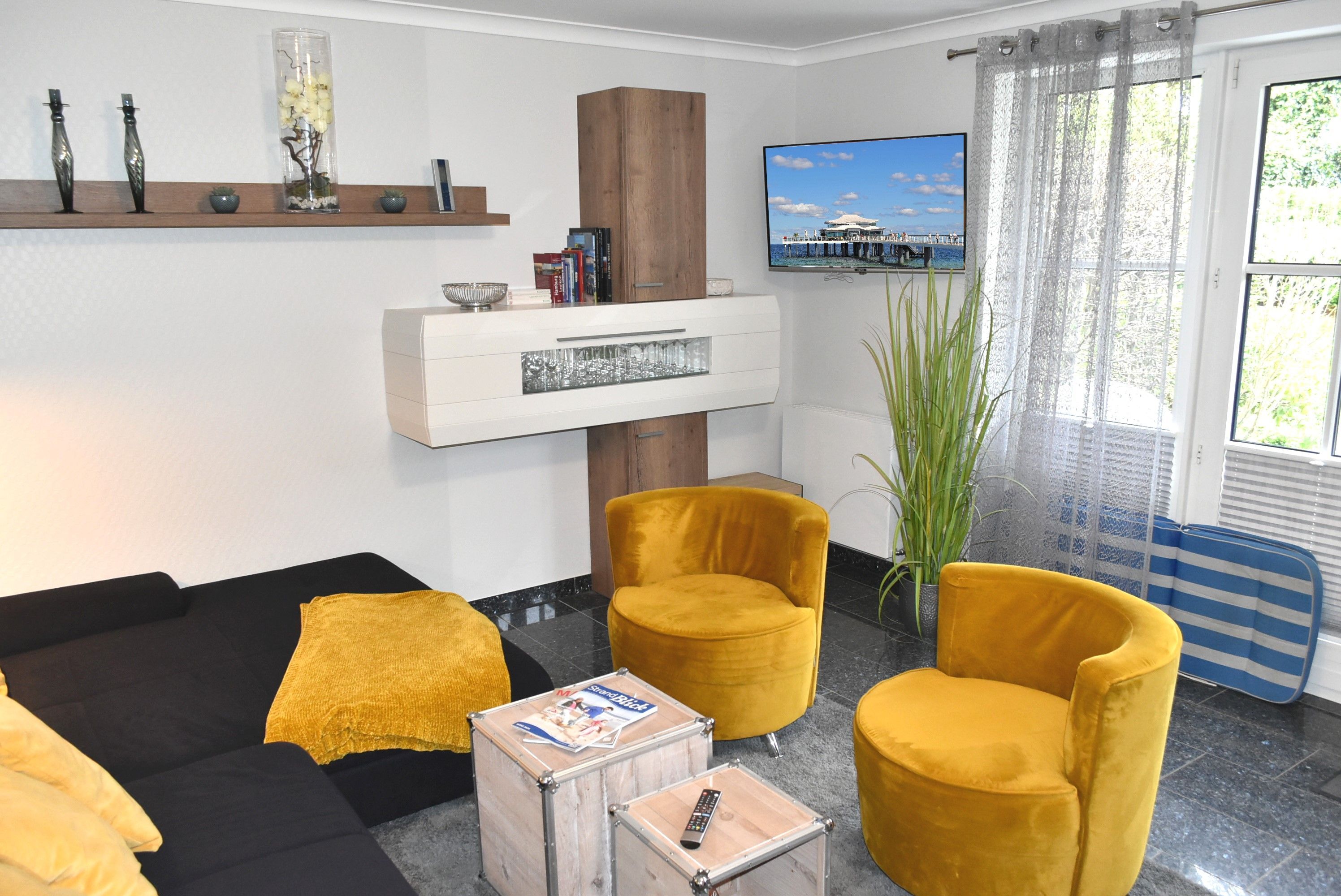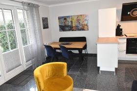 Unsere sehr gut und hübsch ausgestattete Ferienwohnung ist gemütlich aber doch modern und  in ruhigen Farben eingerichtet und befindet sich in einer Appartementanlage mit mehreren Ferienwohnungen. Die Terrasse liegt zum Süden-Osten, abseits der Straße,  so können Sie schon am Morgen Ihr Frühstück in Ruhe  genießen.  In der Anlage gibt es ein Spielplatz für die Kleinen. Haustiere sind hier herzlich Willkommen. Der Stellplatz für Ihren Pkw ist in einer Tiefgarage. Zum Strand müssen Sie keine Straße überqueren und nur 80 Meter zu Fuß gehen.