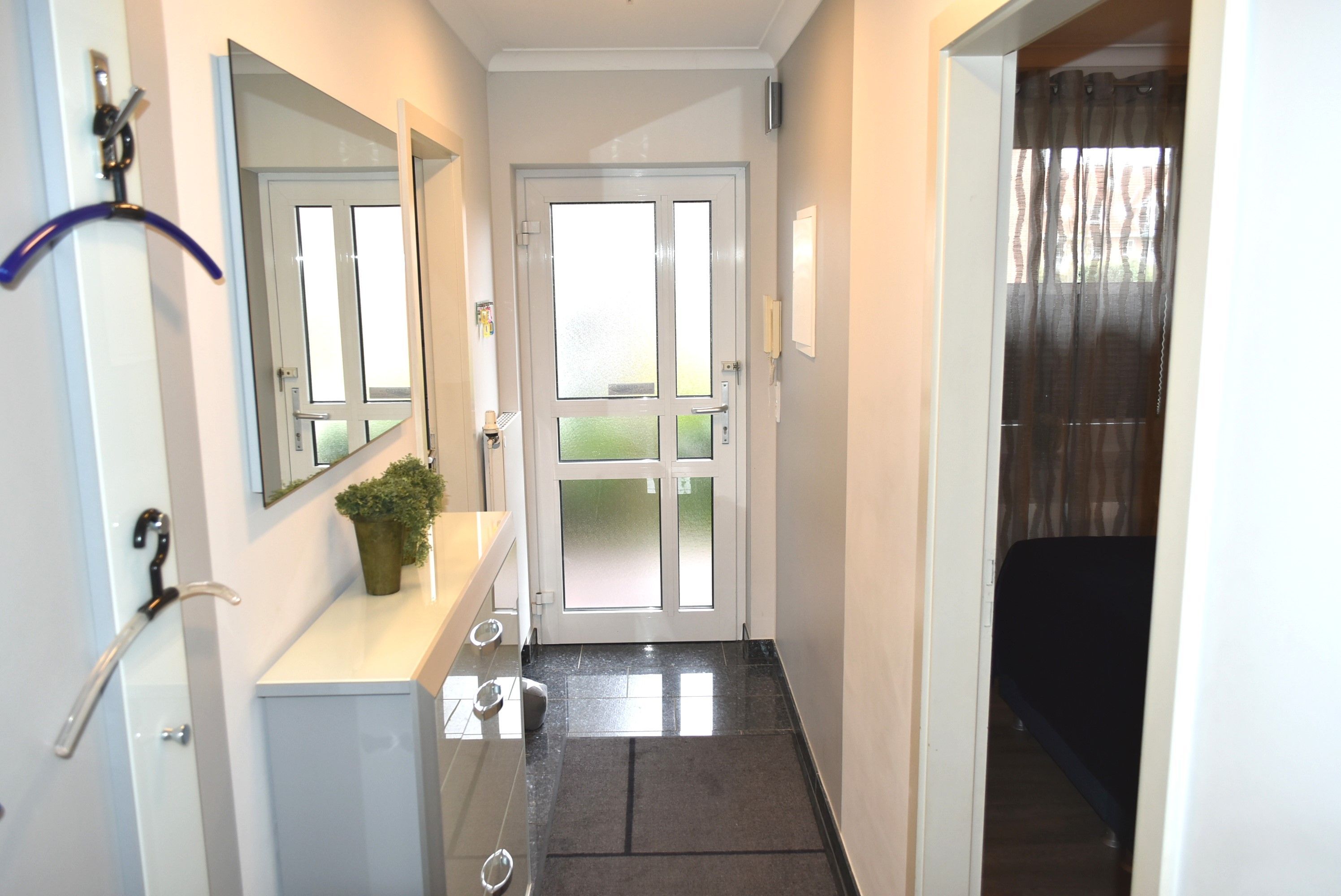 Flur:                       Garderobe, Schuhschrank, Spiegel