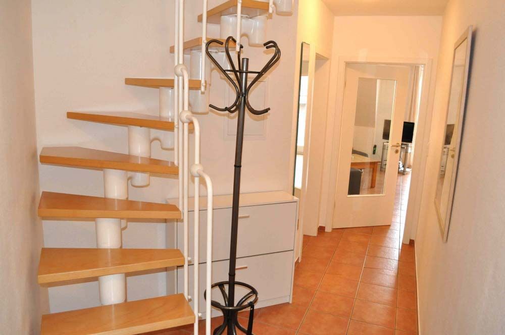Flur: Garderobe, Spiegel, Treppe nach oben