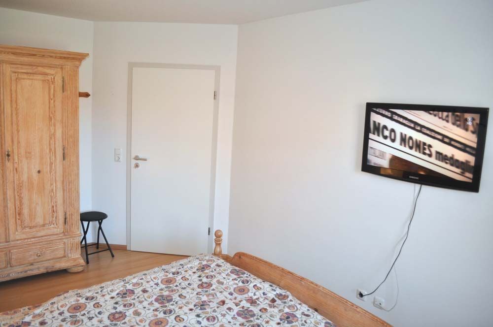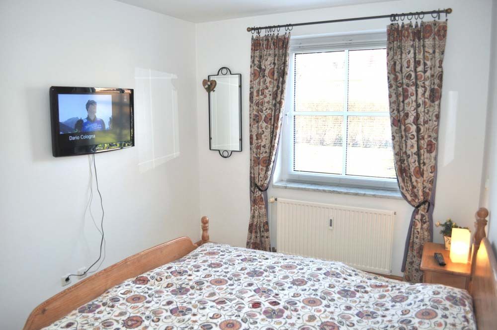 Schlafzimmer 1: 2 Nachttische, Doppelbett, Flachbildschirm, Kleiderschrank, Radiowecker, Sat-TV