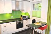Wohnzimmer: 2 Tresenstühle, 4 Plattenherd mit Ceranfeld und Backofen, 4 Stühle, Blu-Ray-Player, Bücher, Couchtisch, Eckcouch, Einbauküche, Esstisch, Geschirr, Kaffeemaschine, Kühlschrank mit 3* Gefrierfach, Mikrowelle, Sat-TV, Spülmaschine, Stehlampe, Stereoanlage mit CD-Player, Telefon, Töpfe, Tresentisch, TV-Anrichte, TV-Surround-Anlage, Wasserkocher