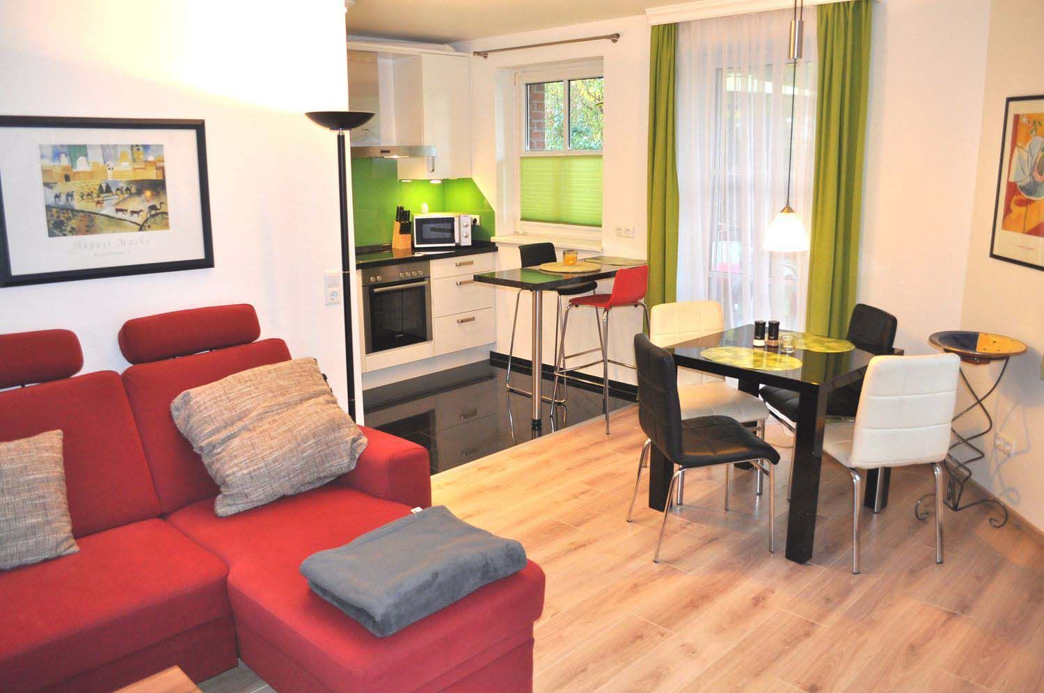Die moderne und sehr gemütliche Ferienwohnung befindet sich in einer Appartementanlage mit mehreren Ferienwohnungen. Sie befindet sich im Erdegeschoss und verfügt über zwei Terrassen, auf der einen Terrasse kann man die Morgensonne genießen und auf der zweiten Terrasse die spätnachmittags- und Abendsonne. Auch der Vierbeinige Liebling darf sich hier mit Ihnen zusammen erholen. Den idyllischen Hafen erreichen Sie in einer halben Stunde Fußmarsch. Von Niendorf/Ostsee aus können Sie auch tolle Radtouren und Ausflüge in die nähere Umgebung unternehmen.