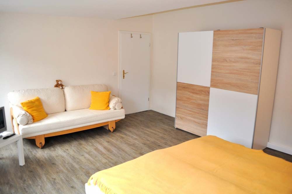 Schlafzimmer 2: 2 Matratzen, Doppelbett 2,00 x 1,80 m, Flachbildschirm, Kabel-TV, Kleiderschrank, Lattenrost Kopfteil verstellbar, Nachttisch, Schlafcouch, Stehlampe