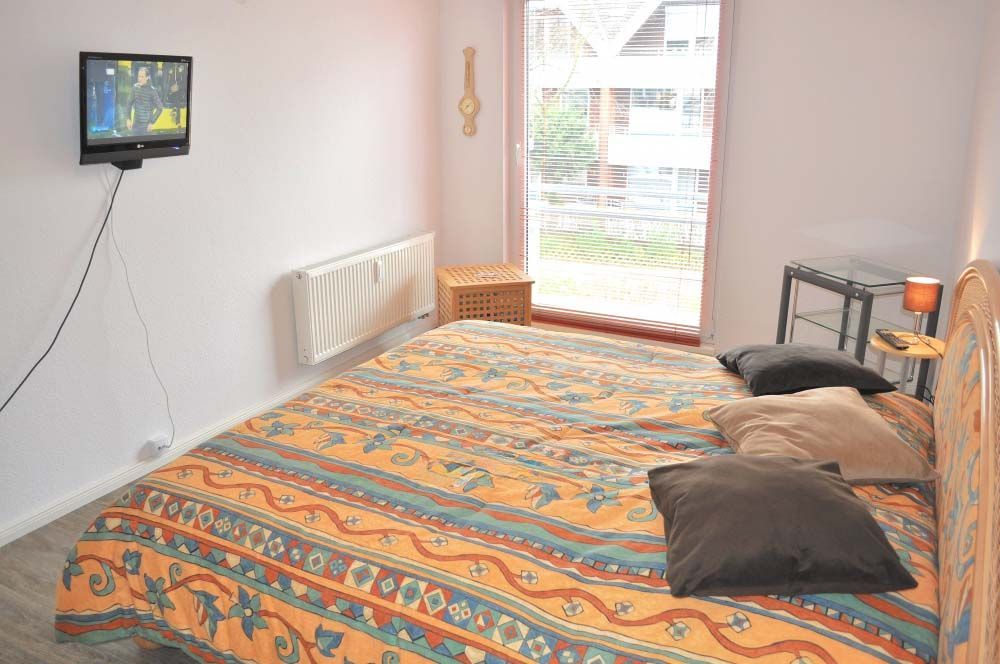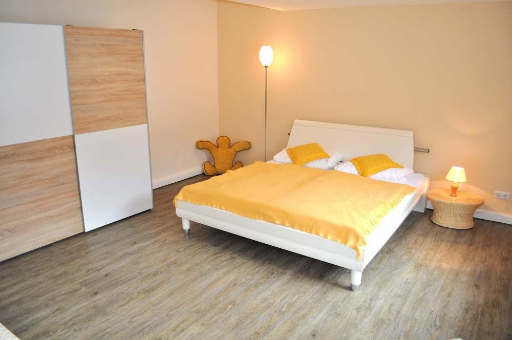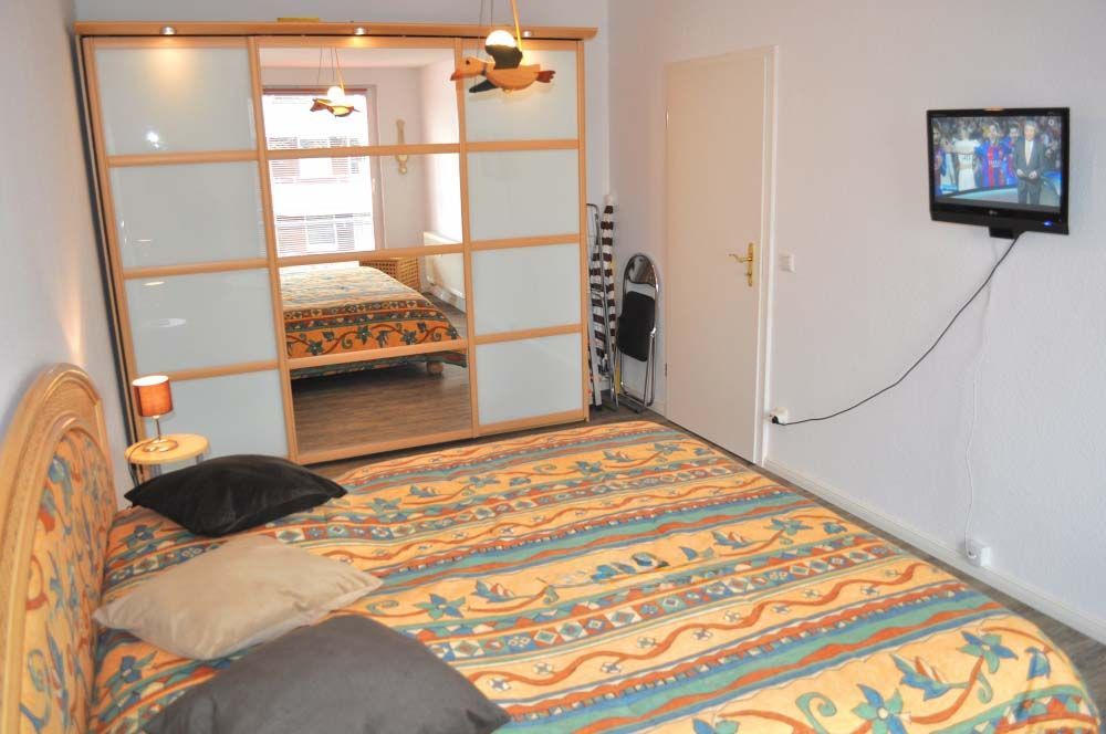 Schlafzimmer 1: 2 Matratzen, 2 Nachttische, Beistelltisch, Doppelbett 2,00 x 1,80 m, Flachbildschirm, Kabel-TV, Klappstuhl, Kleiderschrank, Lattenrost Kopfteil verstellbar, Spiegel, Staubsauger