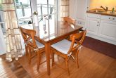 Wohnzimmer: 3 Stühle, 4 Plattenherd mit Ceranfeld und Backofen, Couch, Couchtisch, Crepemaker, Dunstabzugshaube, DVD-Player, Esstisch, Geschirr, Handmixer, Hocker, Kabel-TV, Kaffeemaschine, Kochtöpfe, Küchenzeile, Kühlschrank, Mikrowelle, Mixer, Parkettboden, Sekretär, Sessel, Spülmaschine, Stehlampe, Stereoanlage mit CD-Player, Stuhl, Tischlampe, Toaster, Vitrinenschrank, Waffeleisen, Wasserkocher, Wok