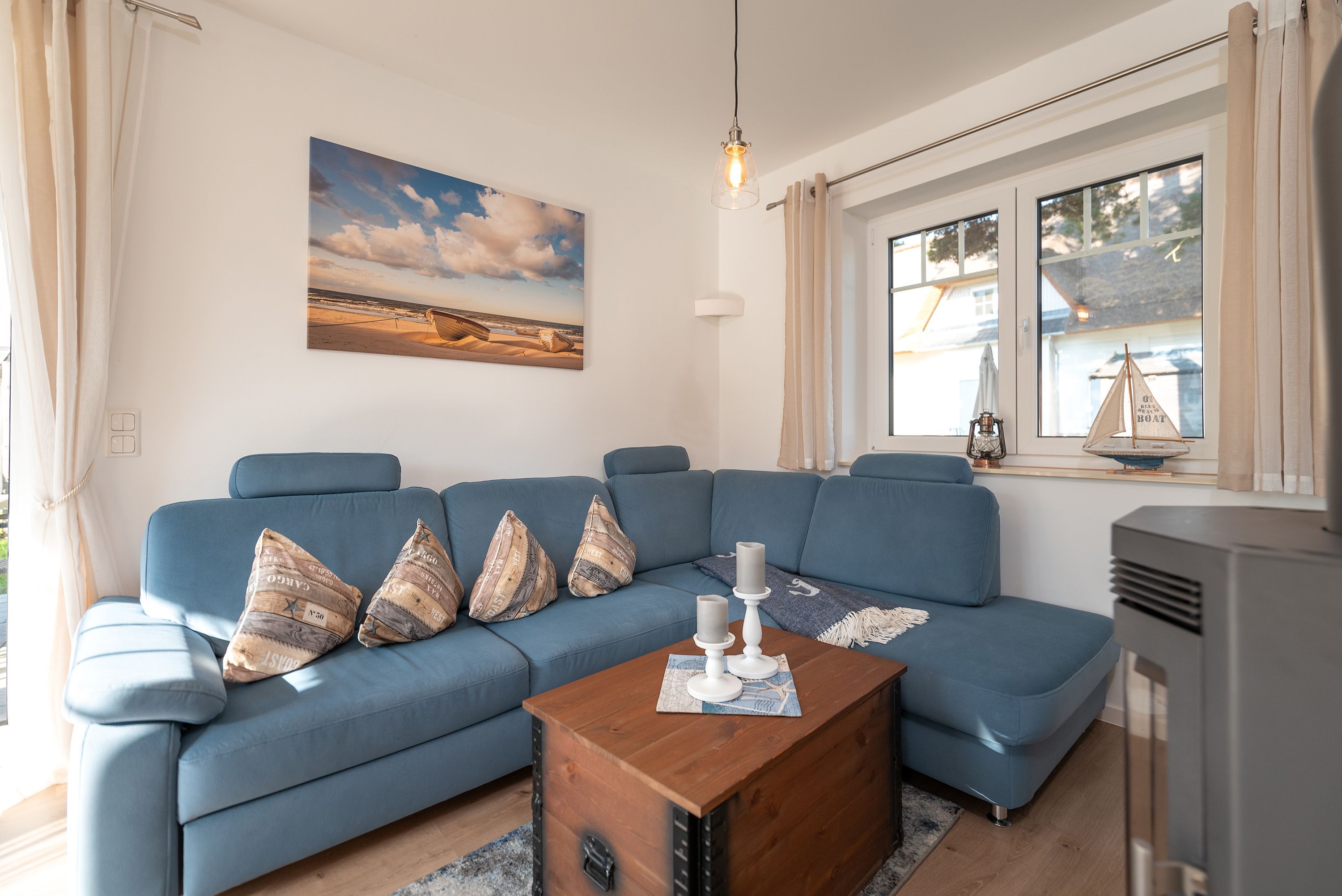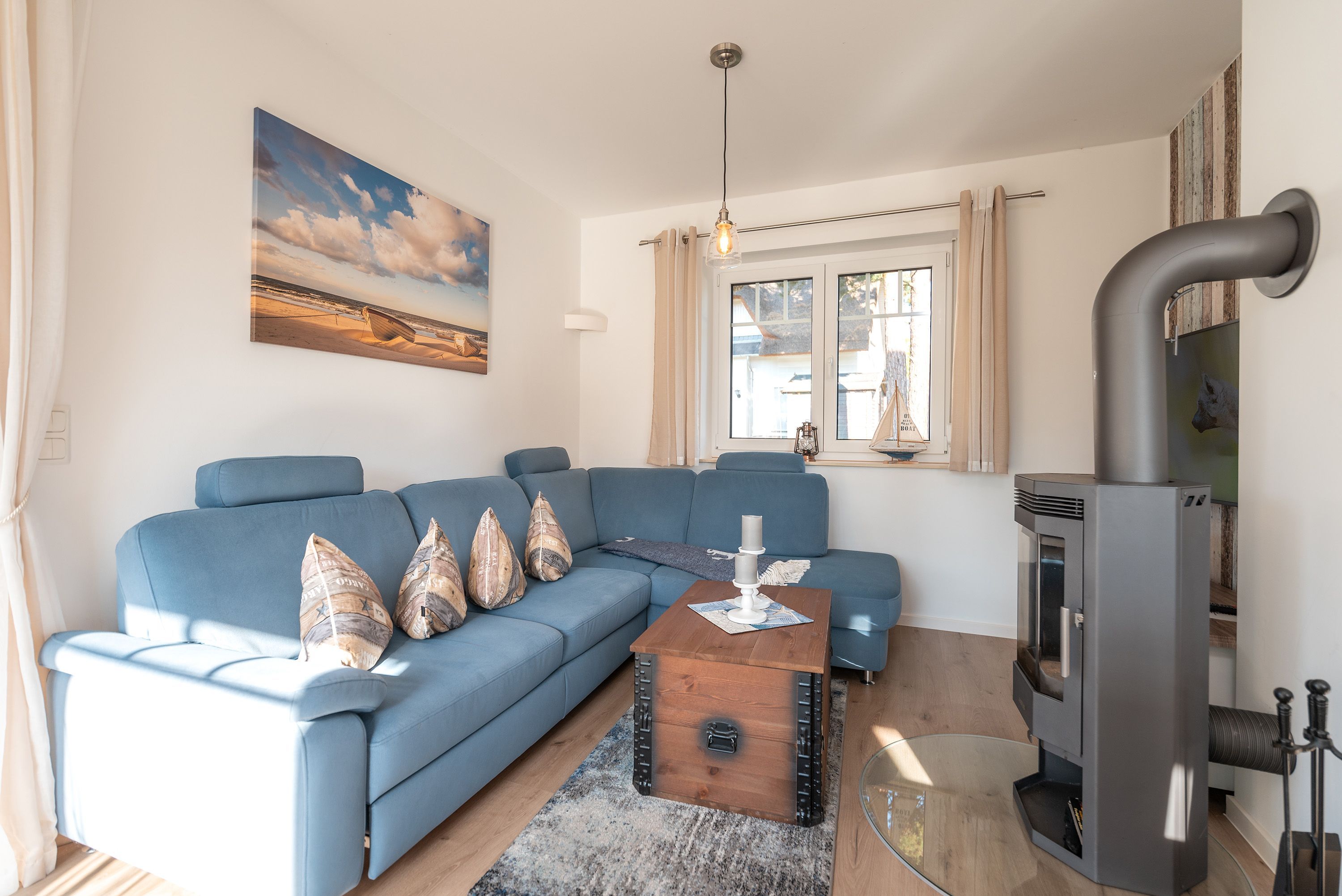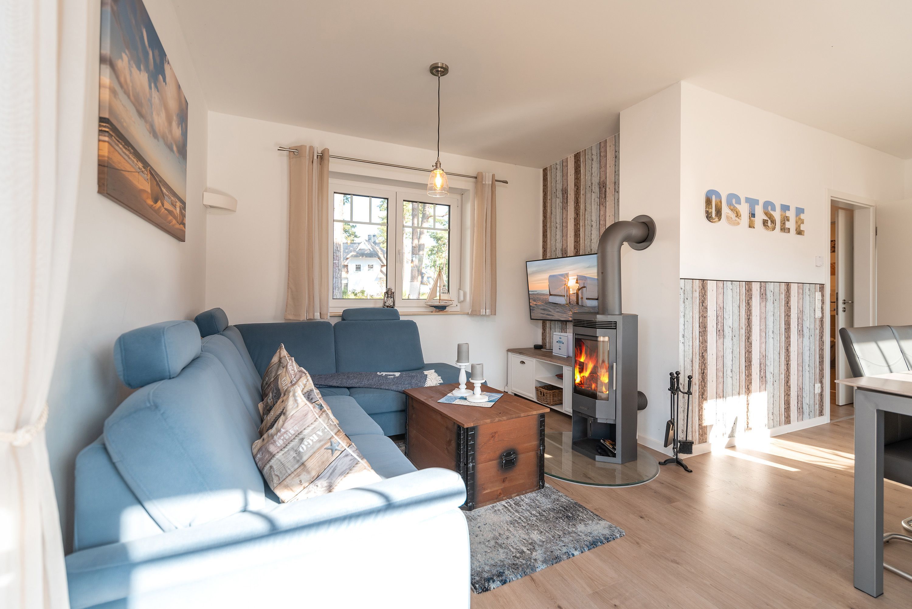 • gemütlicher Wohnraum mit Sitzecke und Kamin