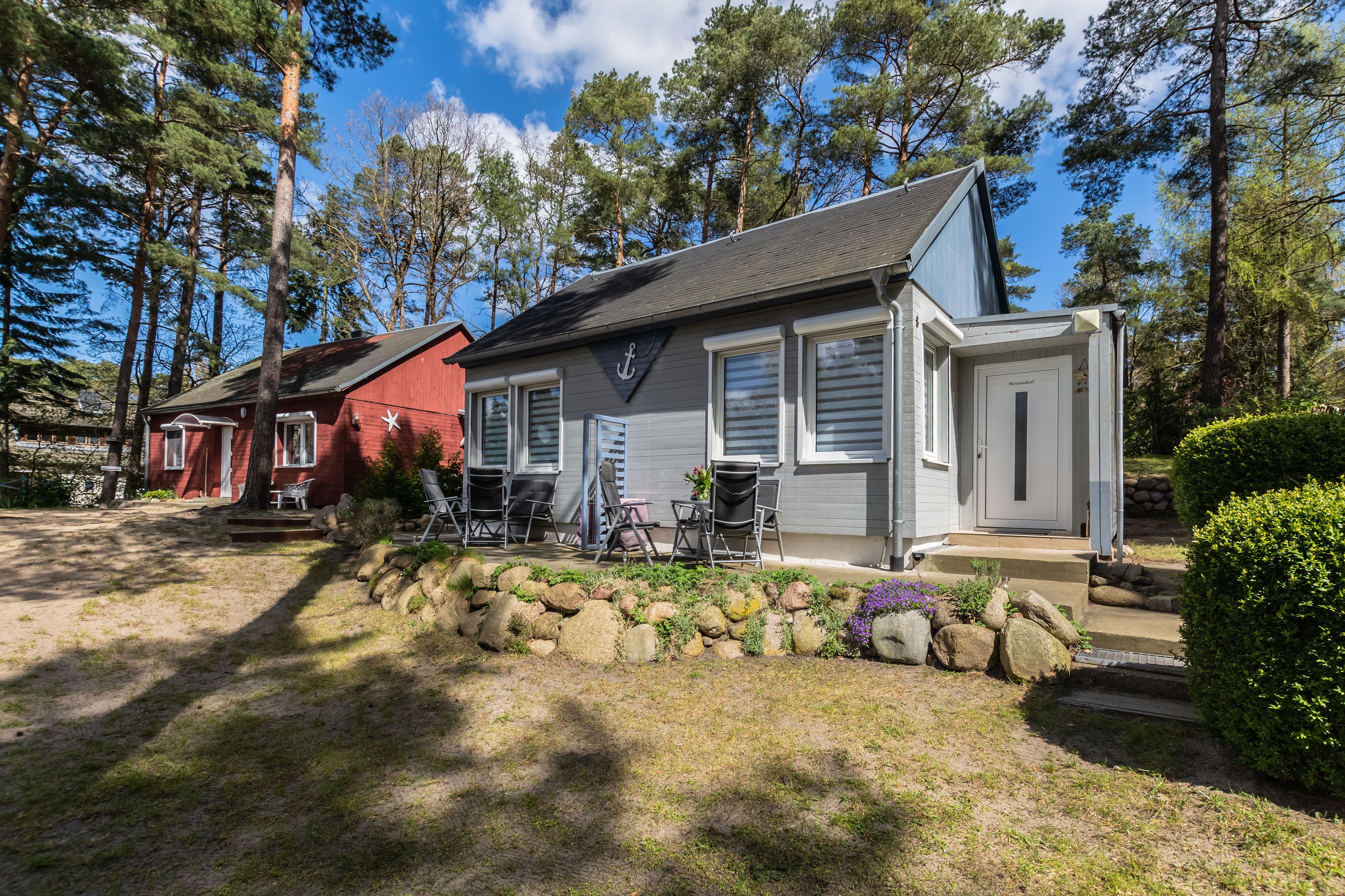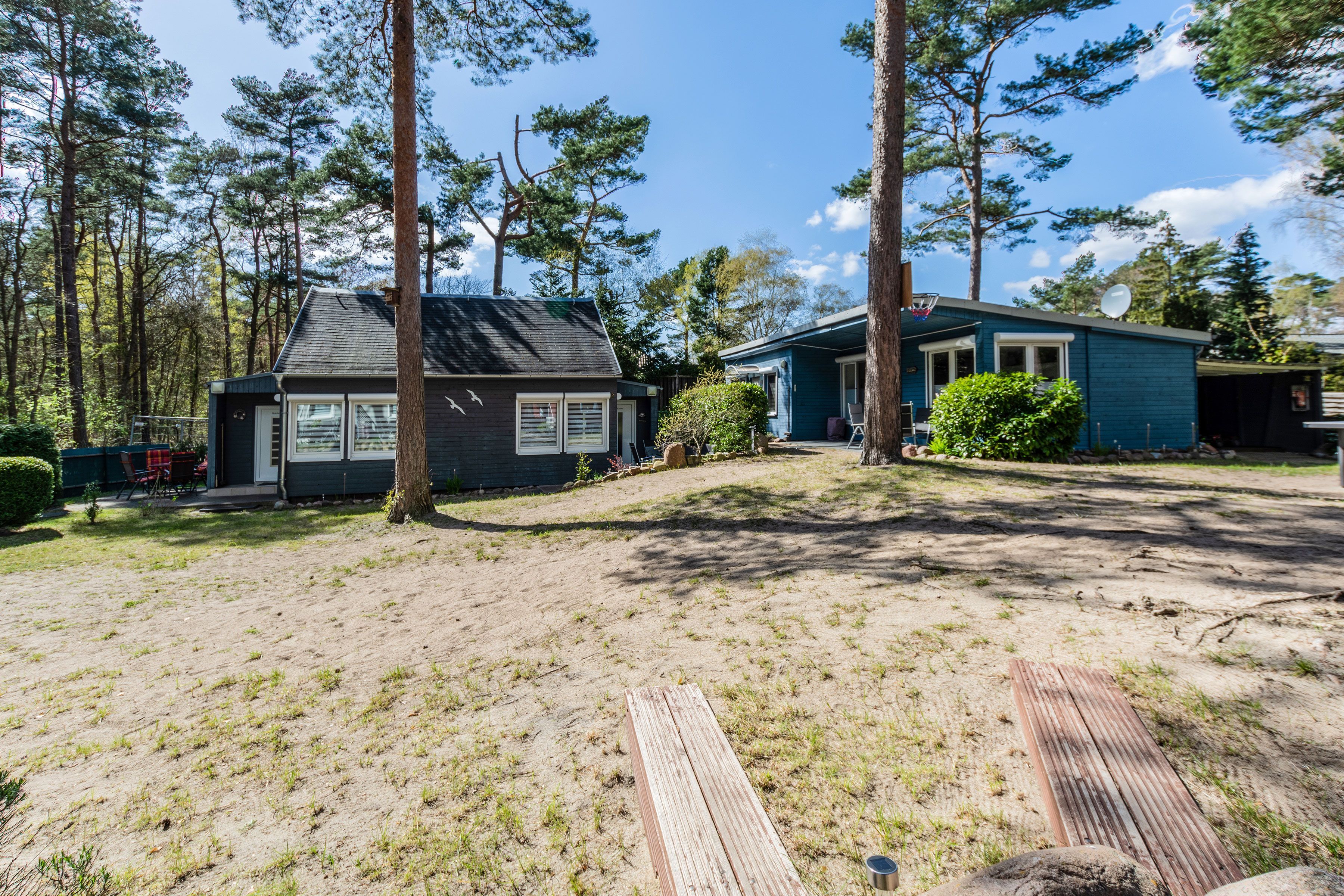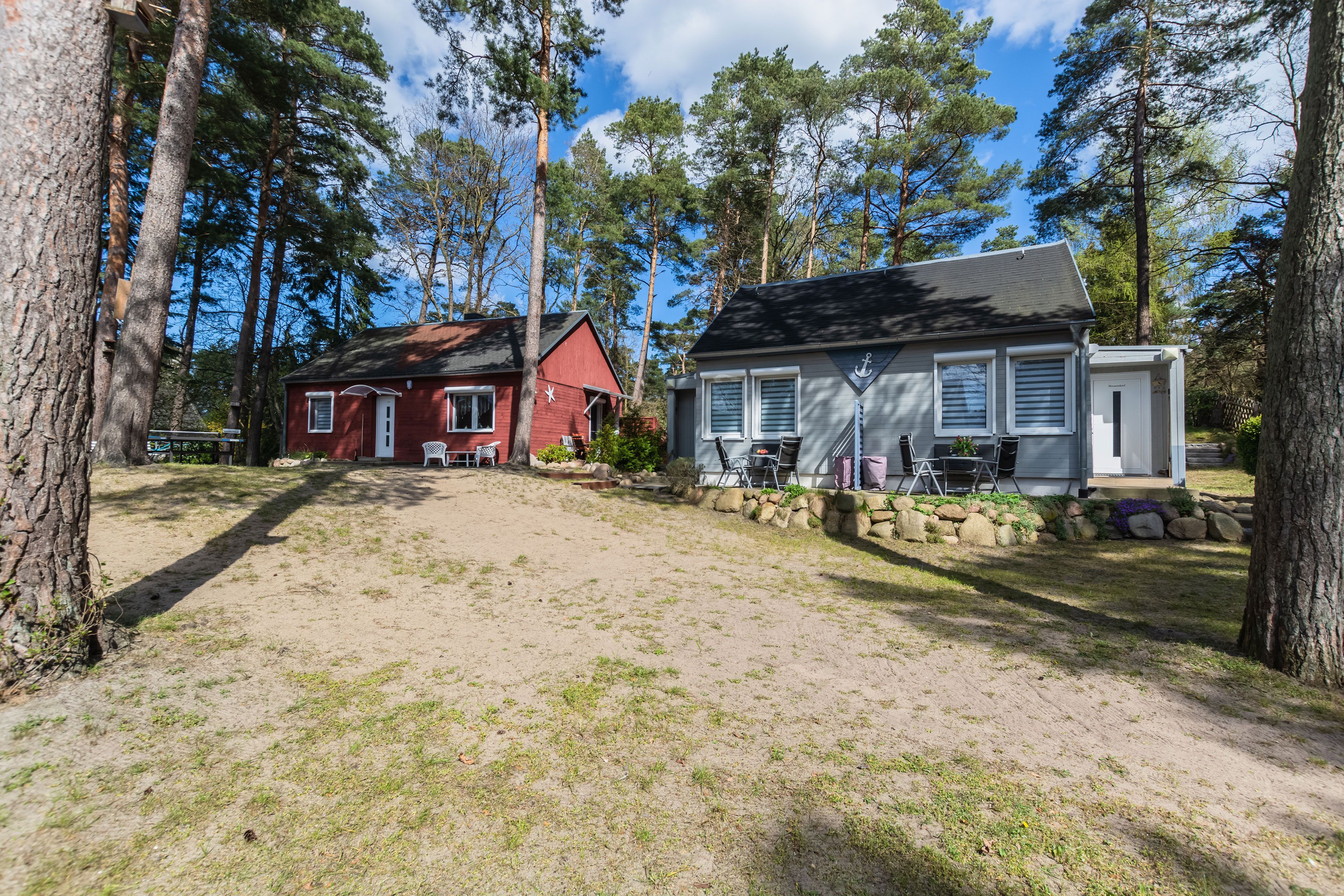 Auf einem 1.100 m² komplett umzäunten Grundstück, welches für alle Gäste der Anlage nutzbar ist, stehen 4 Ferienhäuser. Diese beherbergen die insgesamt 7 Wohnungen. Die gemütlichen Ferienwohnungen können 4, in einer Wohnung sogar 6 Personen beherbergen. Das Grundstück befindet sich im Kiefernwald mit viel Strandsand. Natur pur! Um die Natürlichkeit des Grundstücks zu erhalten, wurde auf Gehwegpflasterung so weit es ging verzichtet. Jede Wohnung hat eine eigene Terrasse mit Gartenmöbel und Holzkohlegrill. Für Fahrräder steht ein überdachter Fahrradständer bereit. Dort haben Sie die Möglichkeit, Ihr E-Bike kostenlos aufzuladen. Zu jeder Ferienwohnung stellen wir 1 PKW-Parkplatz kostenlos zur Verfügung. Diese befinden sich direkt vor dem Grundstück. Außerdem stellen wir kostenloses W-Lan zur Verfügung (dem Ort Baabe entsprechende Höchstleistung).