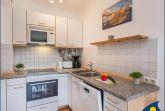 • offene Küche mit Ceranfeld, Backofen, Mikrowelle und Geschirrspülmaschine