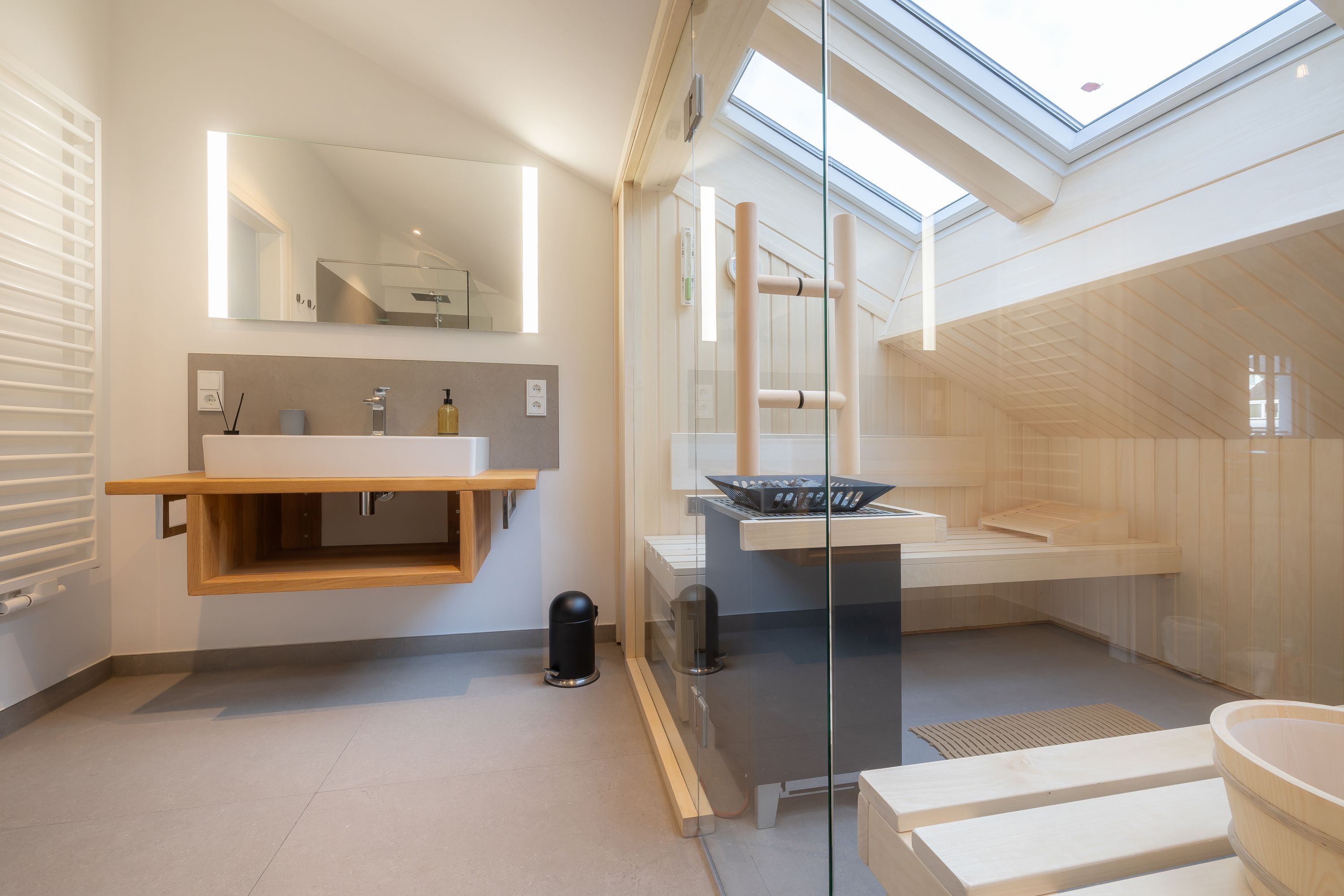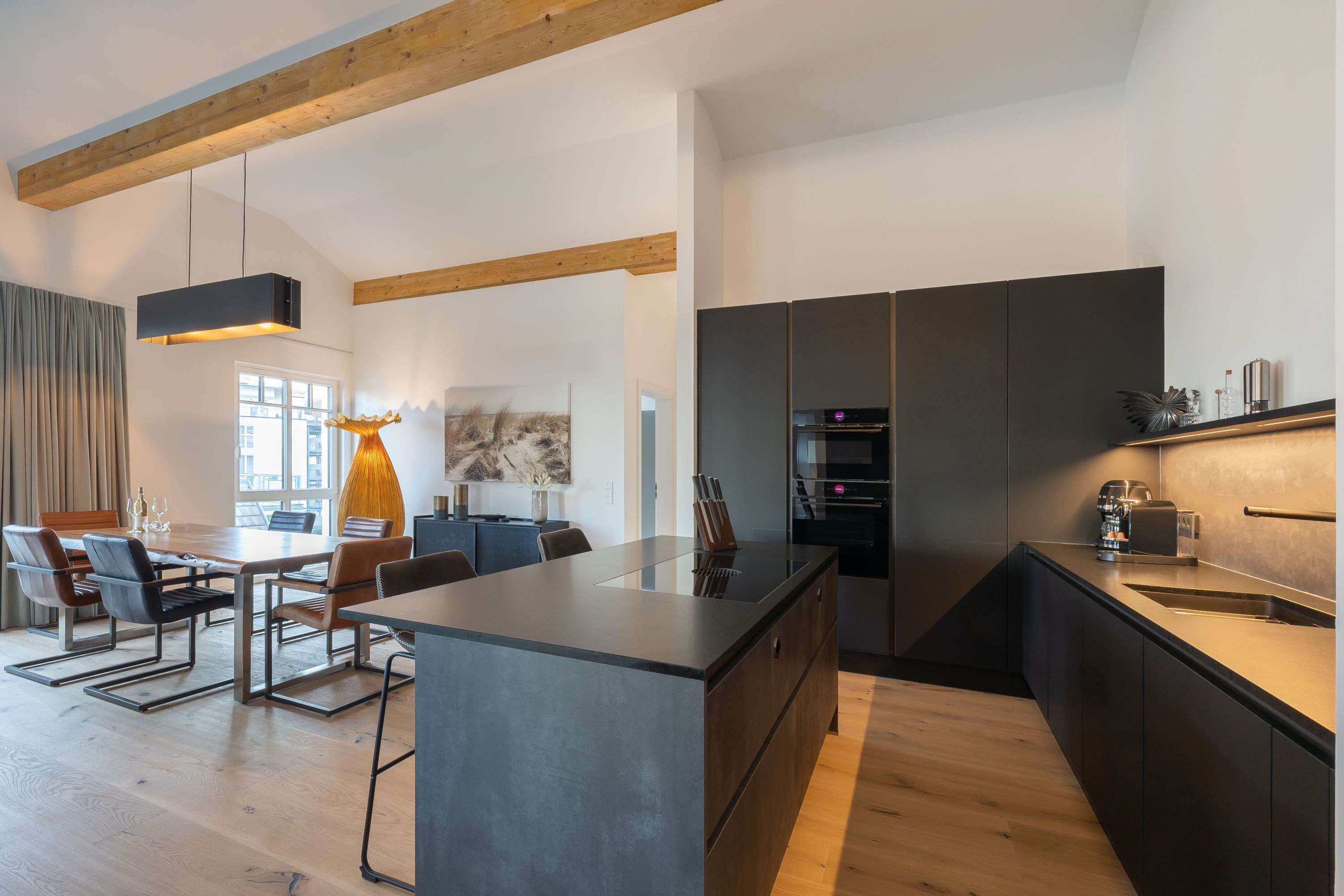 Sehr geehrte Gäste, wir freuen uns Ihnen dieses 2023 neu errichtete Penthouse anbieten zu können. Dass dies ein wirklich luxuriöses Urlaubsdomizil inmitten des Ostseebad Binz ist, wird einem schon beim befahren des Gebäudes bewusst. Ein elektrischer Autolift bringt Sie und Ihr Fahrzeug in eine unter dem Haus gelegene Tiefgarage. Aus dieser erreichen Sie bequem per Aufzug dieses tolle Domizil im Dachgeschoss der Villa Beatrice. Ebenso befindet sich auf der Tiefgaragenebene ein Fahrradraum, in welchem Sie mitgebrachte Räder unterstellen dürfen. In der Wohnung angekommen betreten Sie diese hochwertig eingerichtete Wohnung im offenen Wohn-, Essbereich. Dieser ist offen und überaus hell gestaltet und bietet direkten Zugang zur tollen Dachterrasse/Balkon. Nur wenige Meter vom feinsandigen Ostseestrand können Sie in der Wohnungseigenen Sauna entspannte Stunden nach dem Strand genießen oder gemeinsam mit ihren liebsten in der hochwertigen Einbauküche kochen. Und das alles an einem der mondänsten Hotspots der Insel Rügen und in absoluter Ruhe. Neben dem tollen Wohnbereich mit Smart-TV inkl Multimediapaket erwarten Sie 2 Schlafzimmer sowie 2 Badezimmer. Ebenso steht Ihnen als Highlight ein Hauseigener Saunabereich zur Verfügung. Dieser verfügt neben einer Münzsauna auch über einen Ruheraum inkl Duschen, Toiletten und einem Außenbereich zum entspannen. Die Lage dieser Immobilie verspricht pure Erholung ohne dabei auf Annehmlichkeiten wie eine Vielzahl umliegender Restaurants und Einkaufsmöglichkeiten verzichten zu müssen.