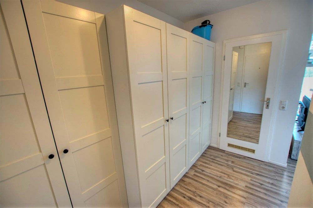 Verbringen Sie erholsame Urlaubstage in dieser 45 qm großen Ferienwohnung im Haus A, 3. Etage, die speziell für 2 Personen eingerichtet ist. Der Balkon mit Blick über den Innenhof lädt zu entspannten Stunden an der frischen Ostseeluft ein.