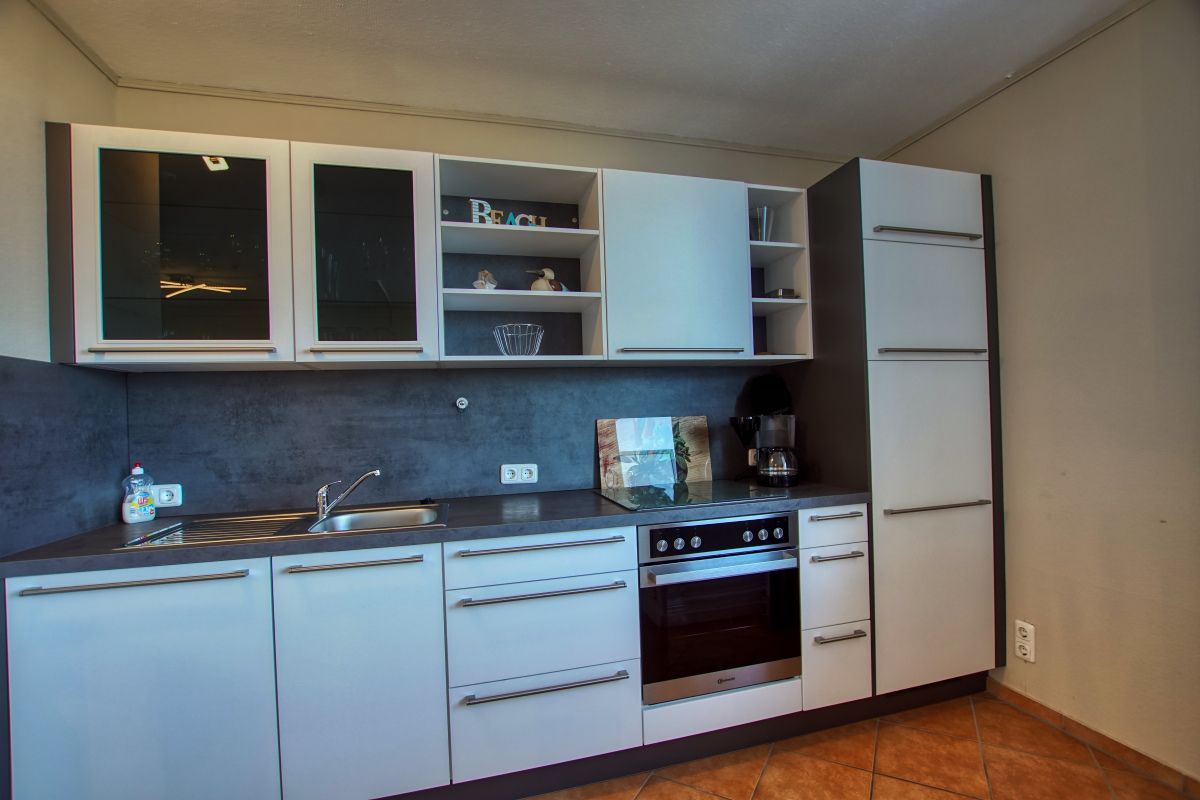 voll ausgestattete Küche mit 4-Platten-Ceranfeld, Backofen, Kühlschrank, Geschirrspüler & Kochutensilien