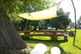 Vom Ufer, mit eigener Badestelle und Bootssteg des Ferienresorts Möwenort, genießen Sie den Sonnenaufgang, den Urlaubstag und Sonnenuntergang. Auf dem Grundstück gibt es einen Grillplatz zur gemeinschaftlichen Nutzung. Um dieses Erlebnis zu steigern, stehen ein führerscheinloses Motorboot und ein Angelboot gegen Gebühr zu Ihrer Verfügung.