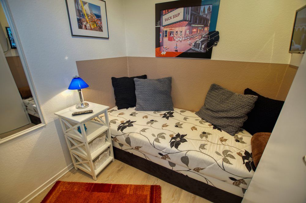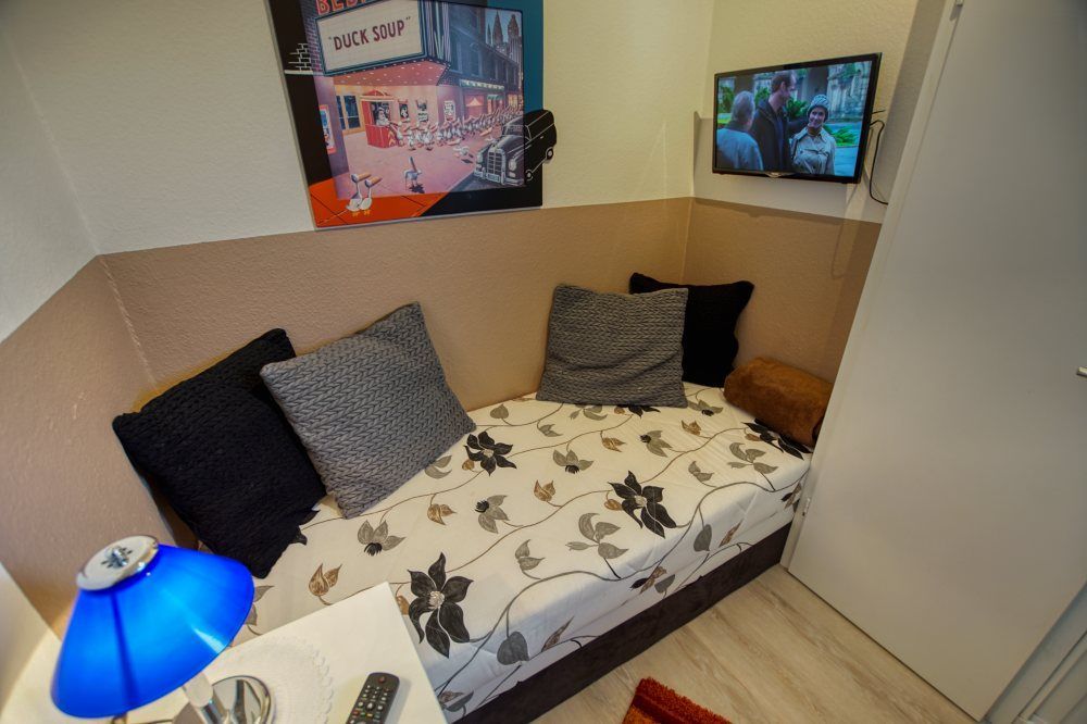 separates Kinderzimmer mit Einzelbett, TV & extra Kleiderschrank
