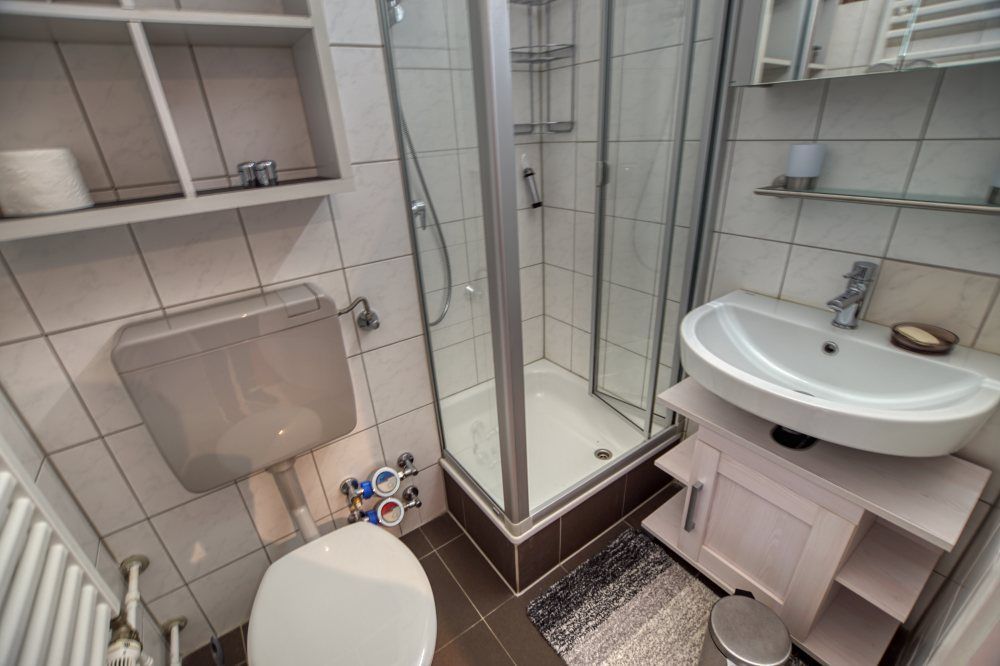 modernes Bad mit Dusche, Handtuchheizkörper & hochwertiger Ausstattung