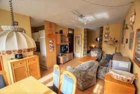 Wohn-Esszimmer mit Flachbild-TV und Radio