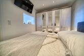 Elternschlafzimmer mit Doppelbett, Kleiderschrank und TV