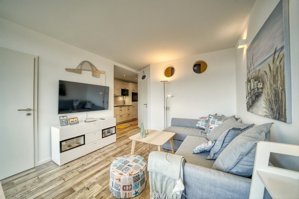 Diese 1A-Ferienwohnung verbindet Funktionalität, modernes Design und maritimes Flair perfekt für Familien, die im Urlaub Wert auf Stil, Komfort und eine zentrale Lage legen.