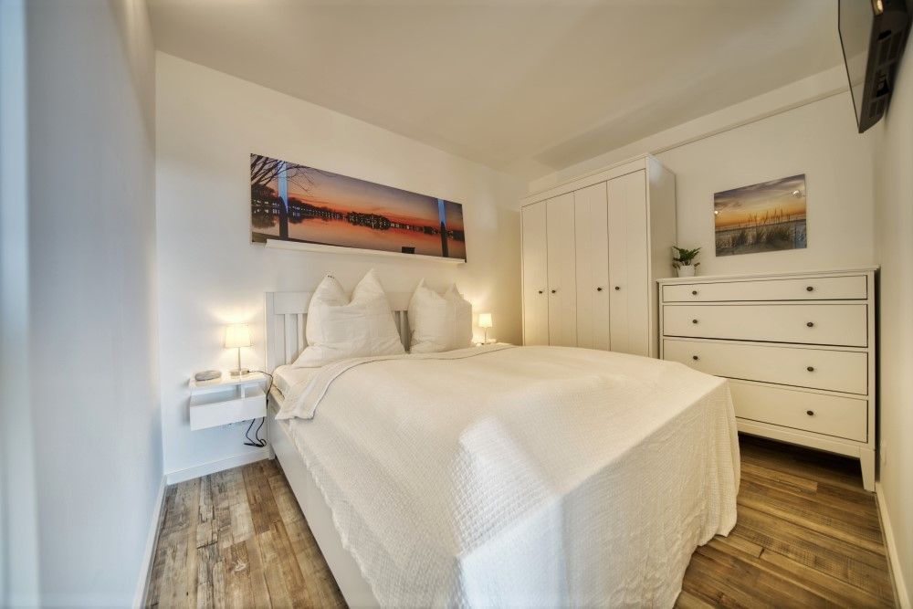 Separates Schlafzimmer mit Doppelbett & eigenem TV