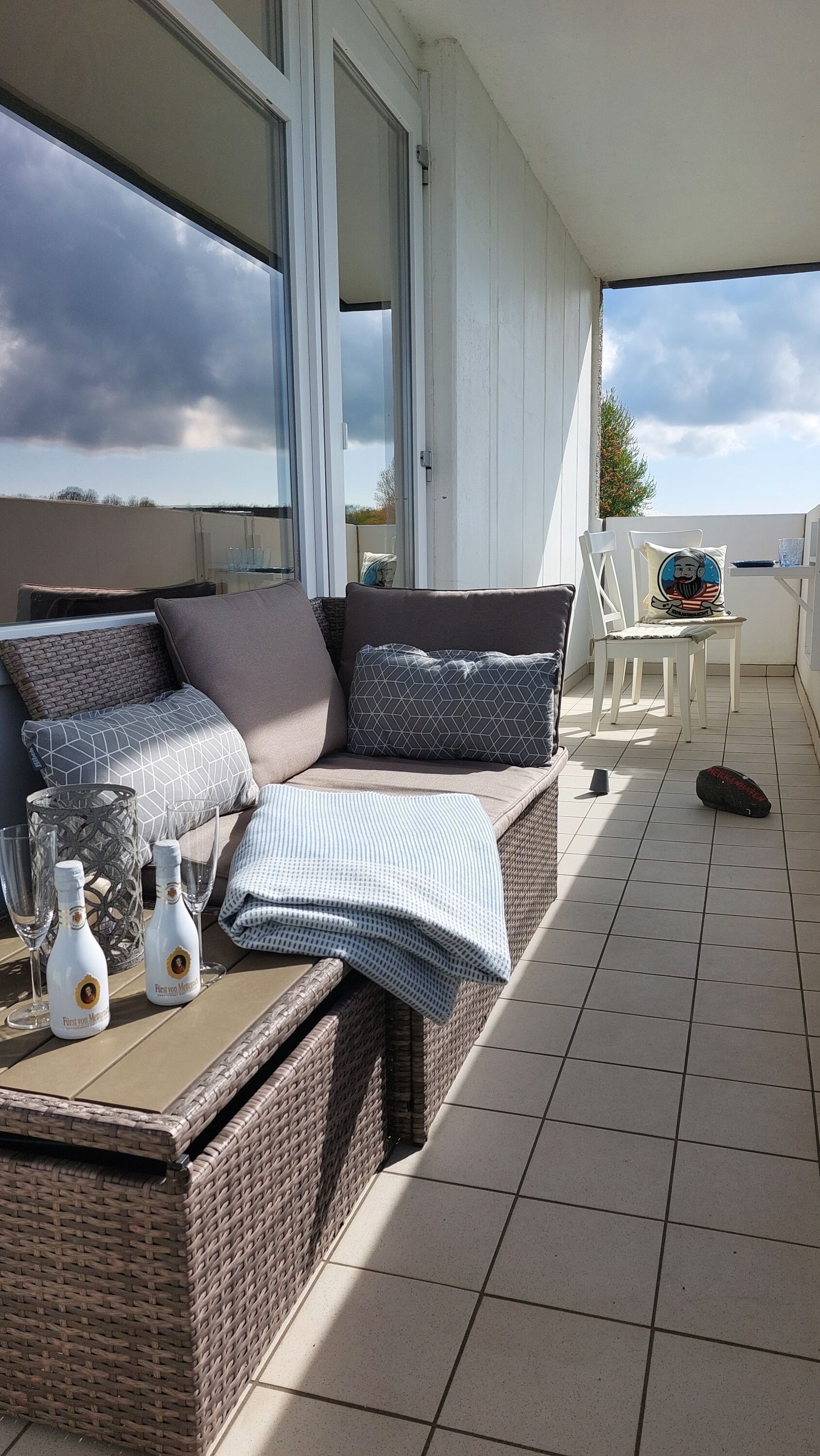 Großer Balkon mit Ausblick auf Natur und Weideflächen