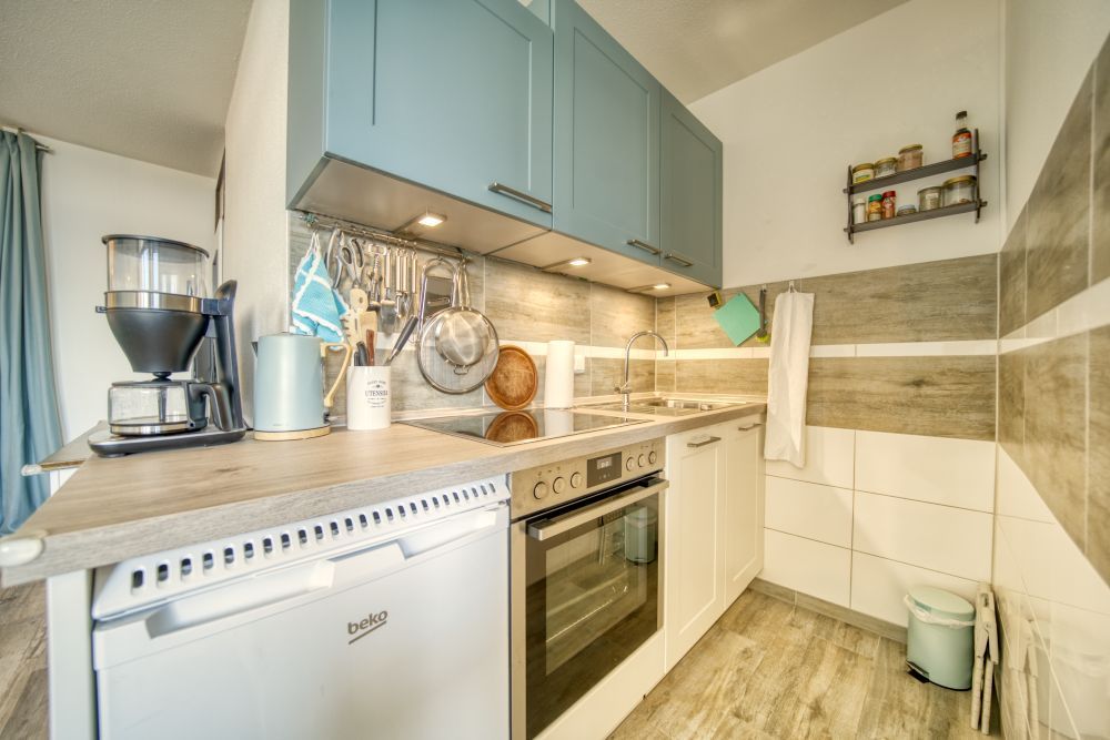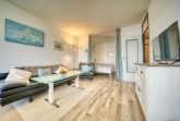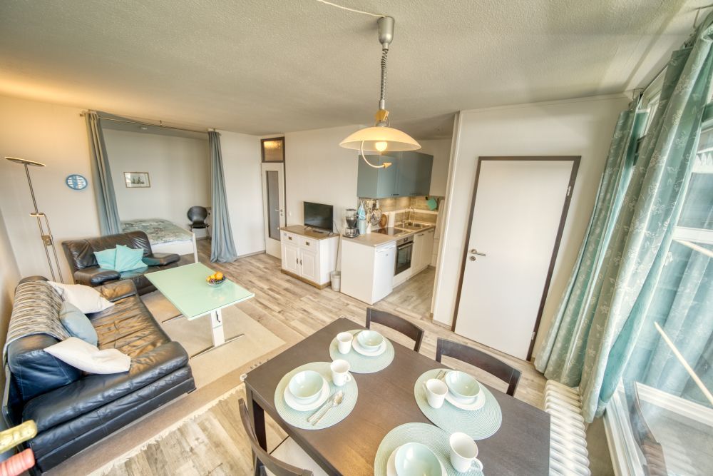 Die Wohnung verfügt über eine Wohnfläche von 45 qm mit folgender Aufteilung: Wohn-Esszimmer, Elternschlafraum mit Doppelbett, sep. Kinderzimmer mit Etagenbett, komplett eingerichtete Küche mit Kühlschrank und Gefrierfach, 4-Plattenherd, Geschirrspüler, Bad mit WC und Dusche, Flachbild-Fernseher und Radio im Wohnzimmer.