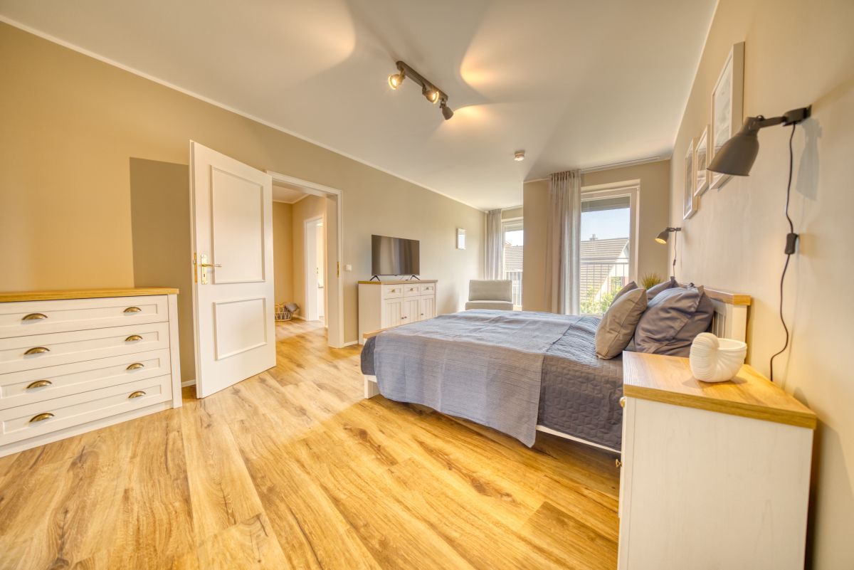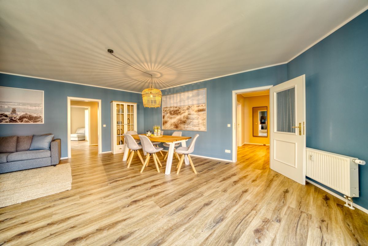Diese 2023 komplett sanierte und barrierefreie Ferienwohnung in der Friedrich-Ebert-Straße 16d bietet auf rund 115 m² ein komfortables Urlaubserlebnis für bis zu 6 Personen durch ein ausziehbares Sofa in der Fernsehecke finden sogar 8 Personen Platz.