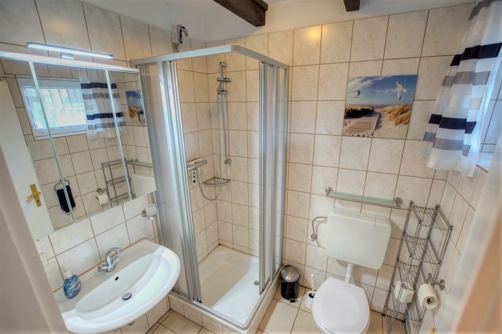 Badezimmer mit Duschkabine und WC im Erdgeschoss