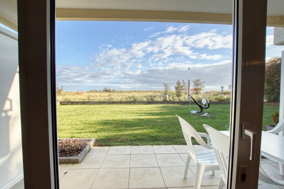 Erdgeschosswohnung mit direktem Zugang zur Terrasse und Blick auf die Strandpromenade