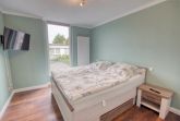 Schlafzimmer: Separat gelegen, mit Doppelbett und zusätzlichem TV, Ausrichtung zum Garten