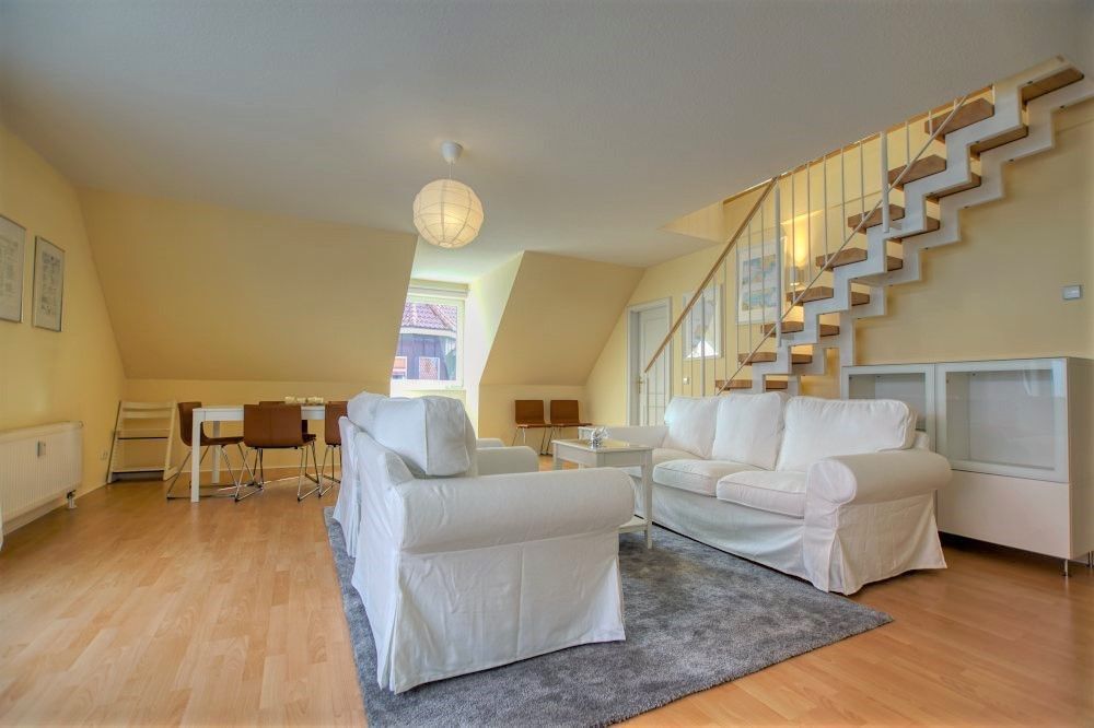 Verbringen Sie Ihren wohlverdienten Urlaub in dieser großzügigen und lichtdurchfluteten Ferienwohnung im Dachgeschoss in der Friedrich-Ebert-Straße 16a in Heiligenhafen. Mit 129 m² und einer Ausstattung, die keine Wünsche offenlässt, bietet diese Wohnung Platz für 6 bis 8 Personen. Genießen Sie den Ostseefernblick in Richtung Fehmarnsundbrücke, Graswarder und das Naturschutzgebiet ein unvergesslicher Blick!