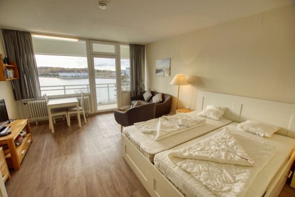 Diese 31 qm große Ferienwohnung in der 3. Etage des Hauses Steinwarder 33 ist ideal für Paare und Alleinreisende. Vom Balkon mit Blick auf den Binnensee genießen Sie wunderschöne Aussichten und entspannte Momente.