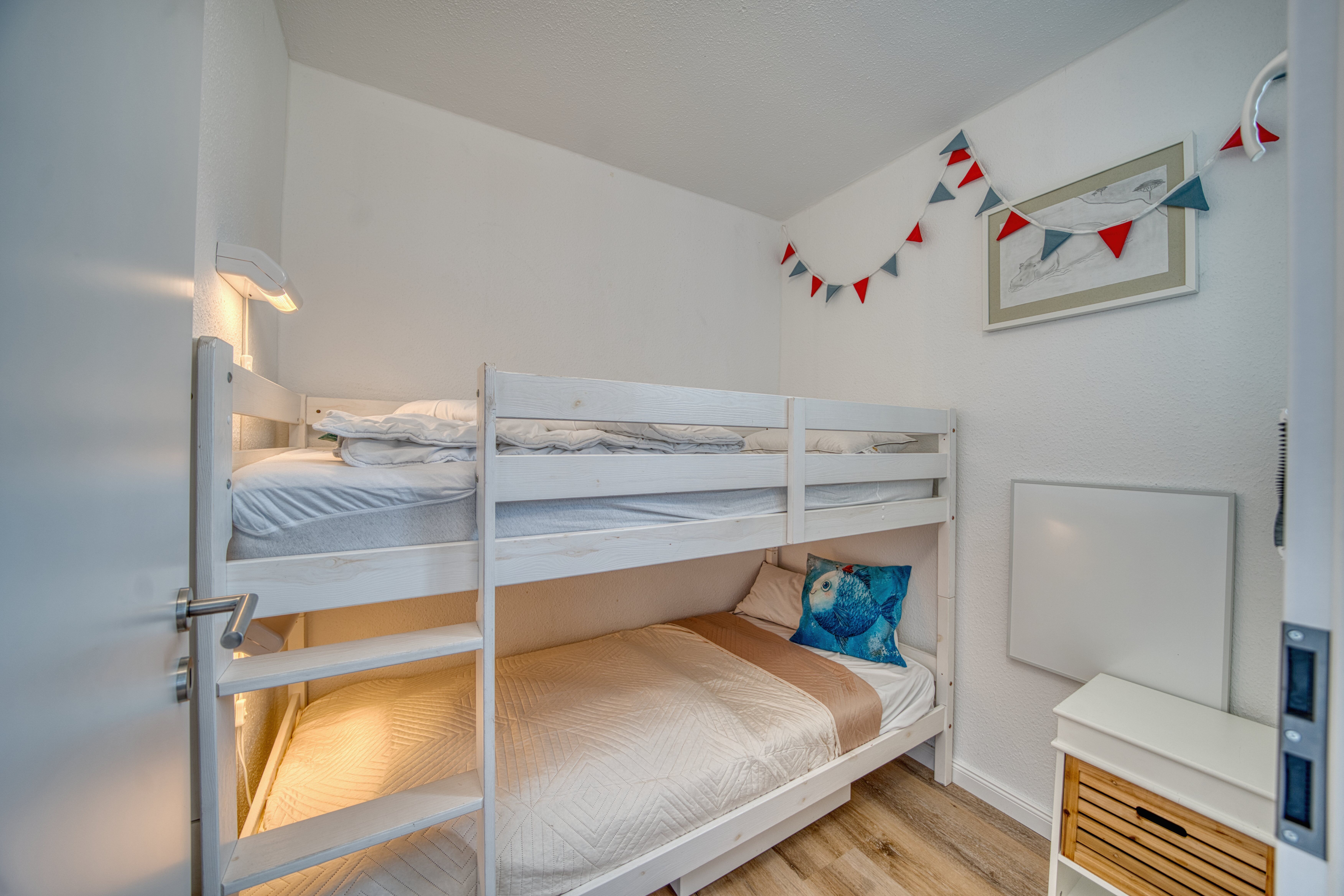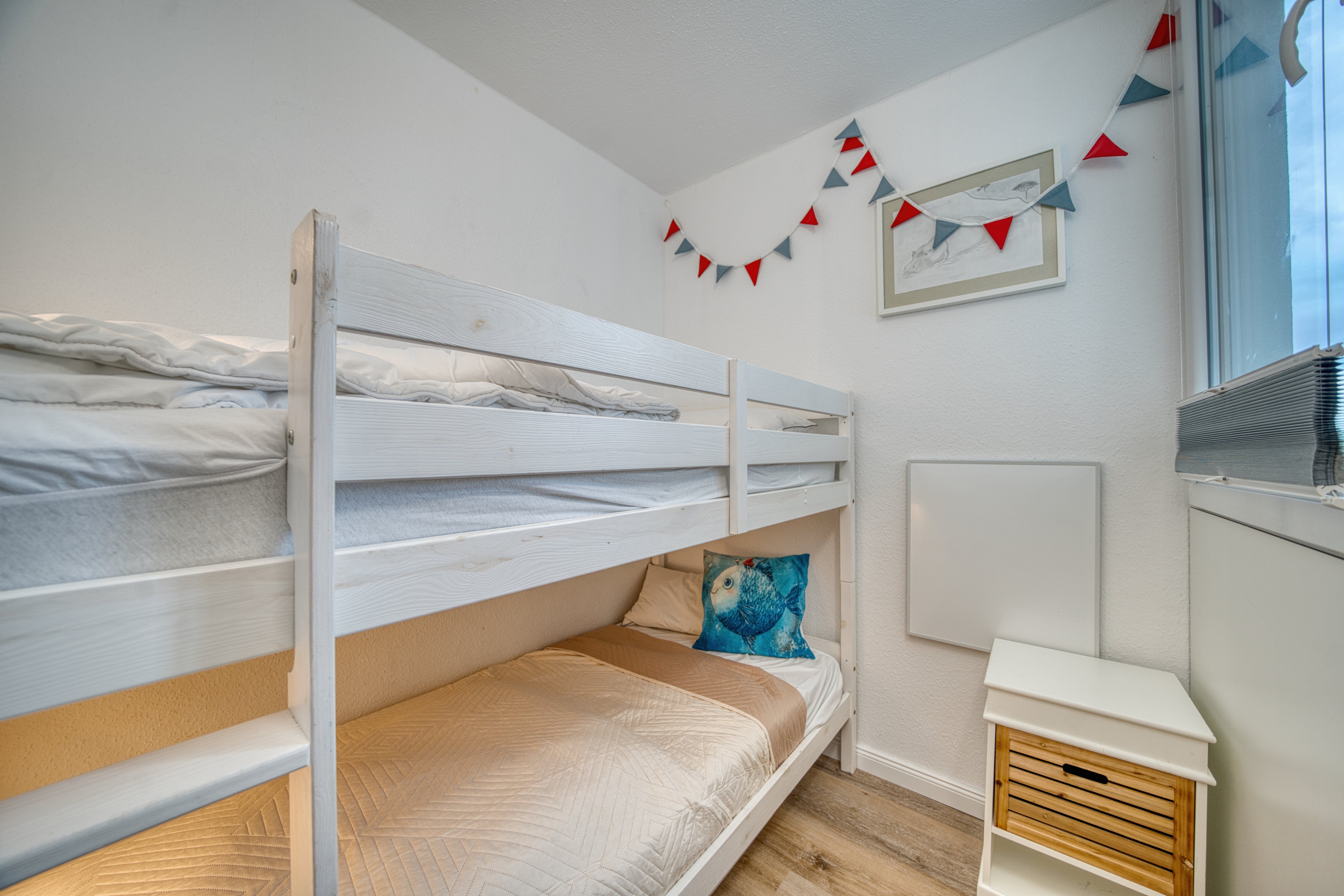 Separates Kinderzimmer mit praktischem Hochbett und Fenster