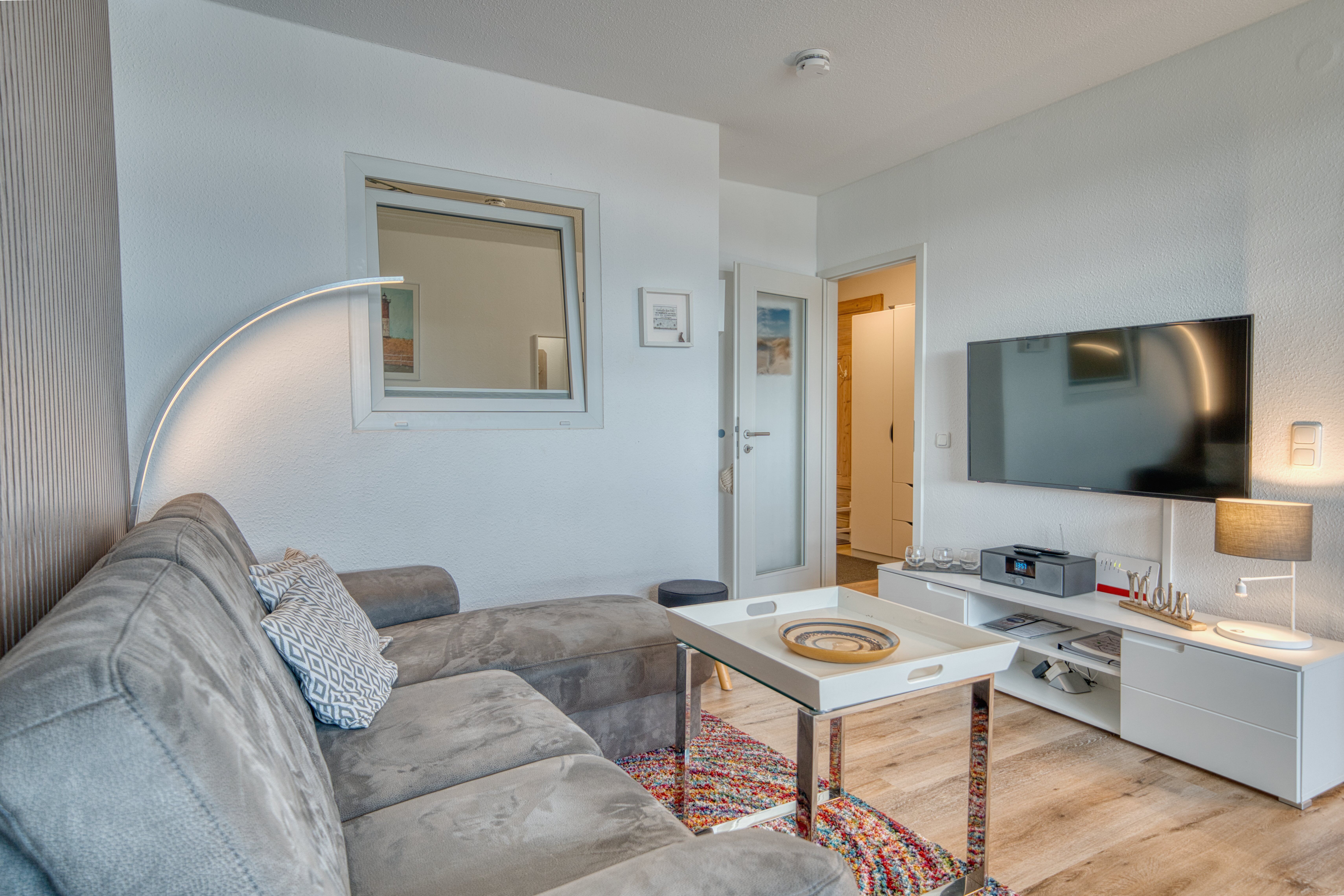 Wohn- und Esszimmer mit Fernseher und kostenfreiem WLAN