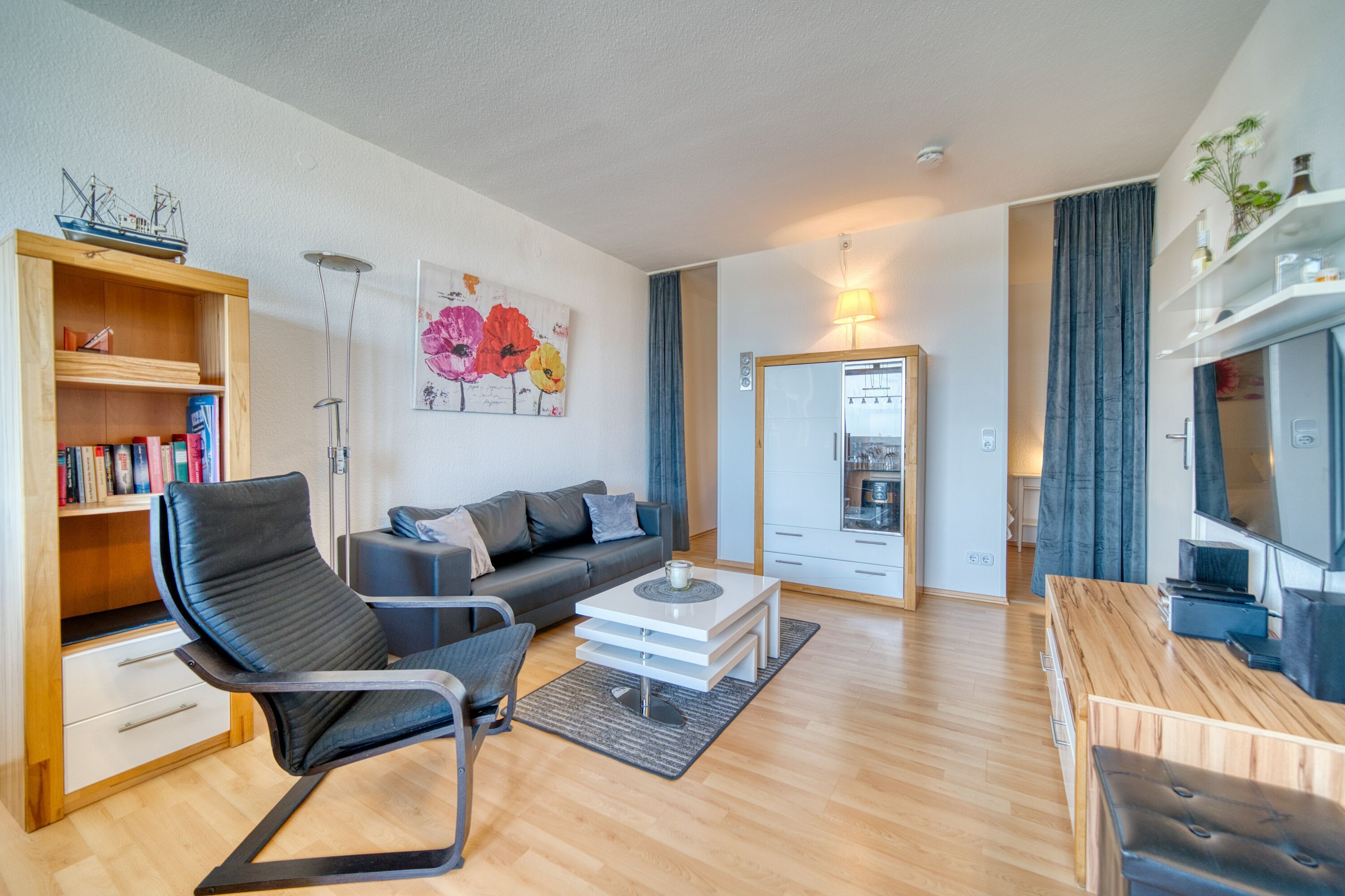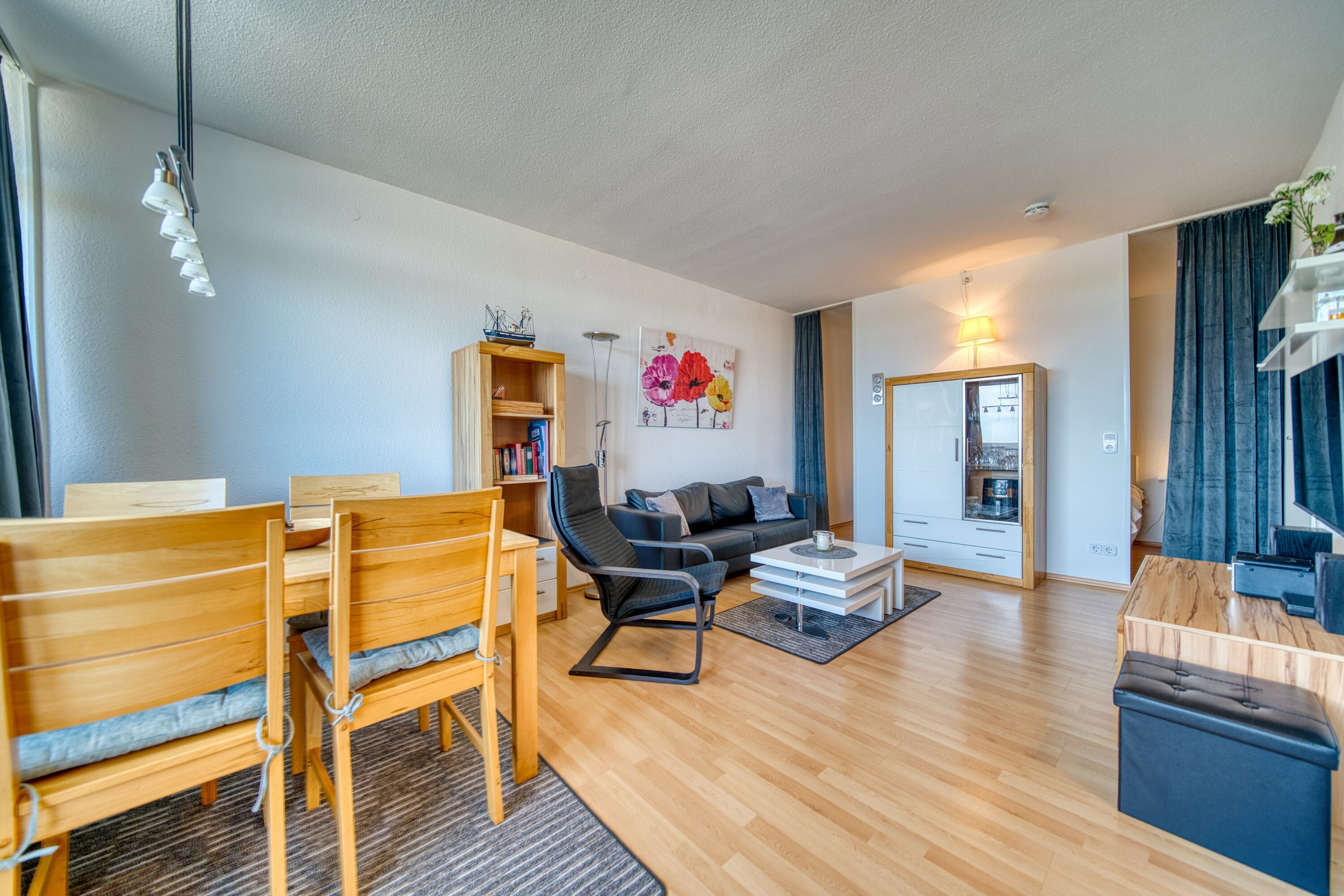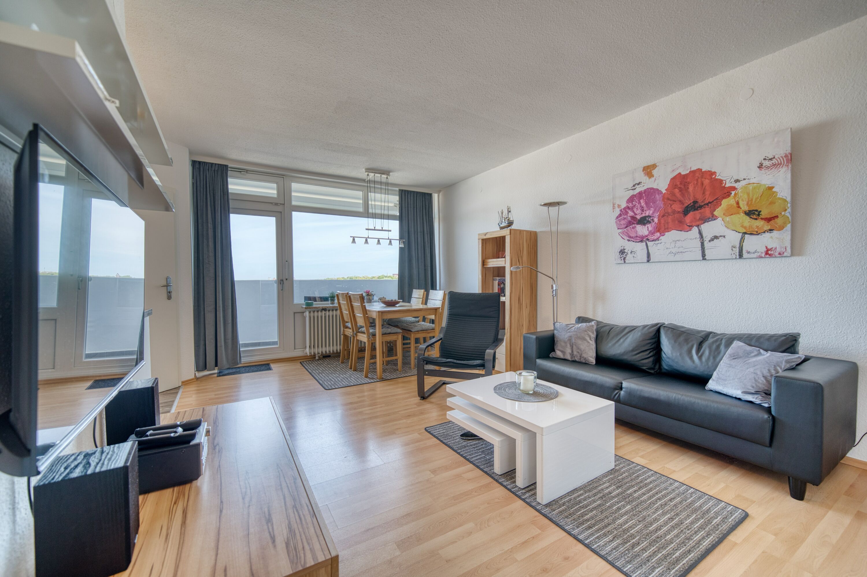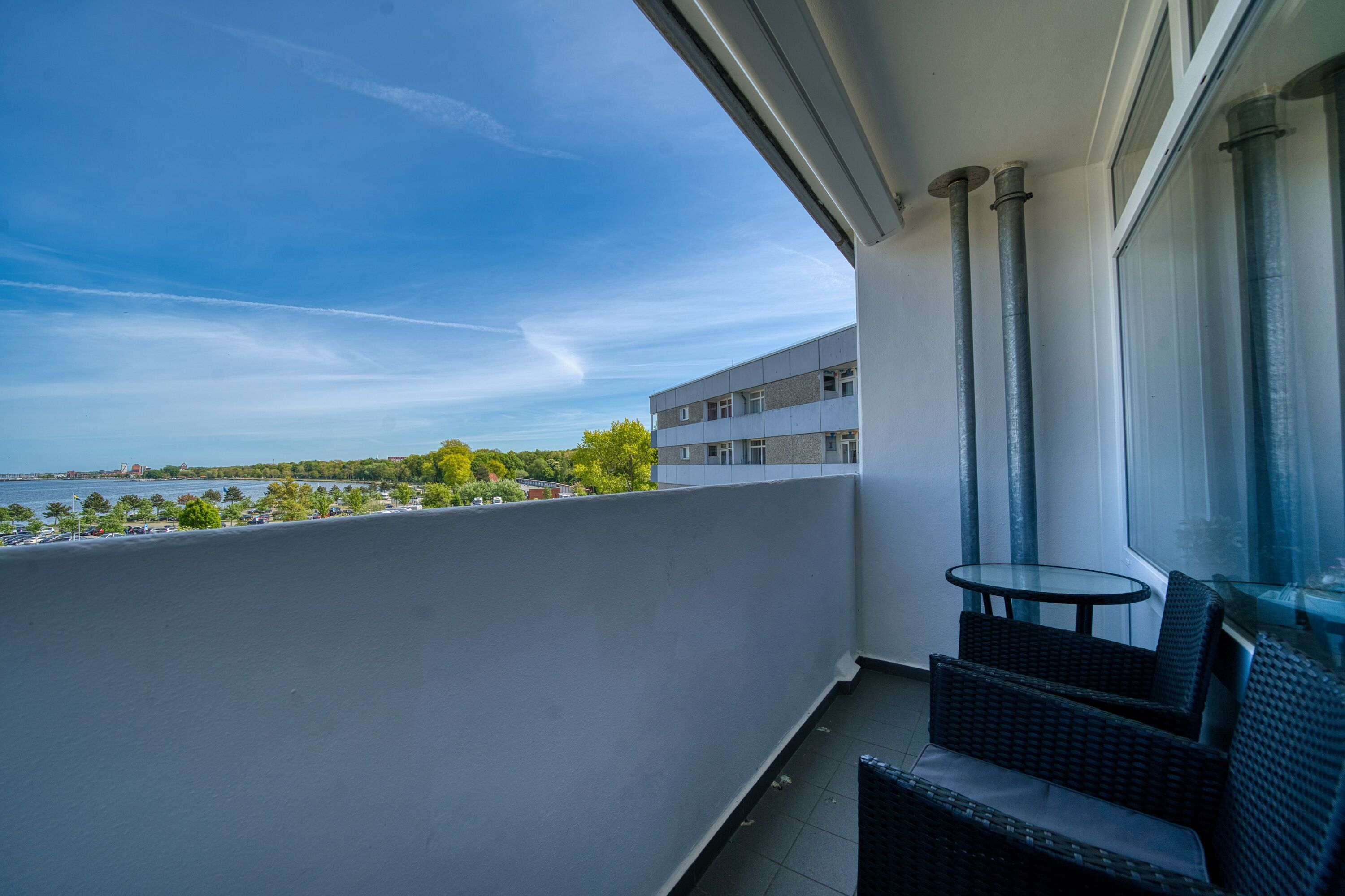 In der 4. Etage des Hauses Q im Ferienpark Heiligenhafen erwartet Sie diese komfortable Ferienwohnung auf 45?m² Wohnfläche perfekt geeignet für bis zu 4 Personen. Der Balkon bietet einen herrlichen Blick über den Binnensee in Richtung Yachthafen und lädt zum Entspannen mit Aussicht ein.