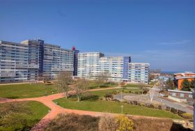 Diese gepflegte Ferienwohnung befindet sich in der 5. Etage des Hauses Q im Ferienpark Heiligenhafen und bietet auf 45?m² Wohnfläche einen angenehmen Rückzugsort für bis zu 2 Personen. Der Balkon eröffnet einen weiten Blick über den Innenhof in Richtung Ostsee und Binnensee perfekt für erholsame Stunden an der frischen Luft.