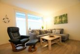 Wohnzimmer mit Flachbild-TV, Ecksofa und bequemen Sessel